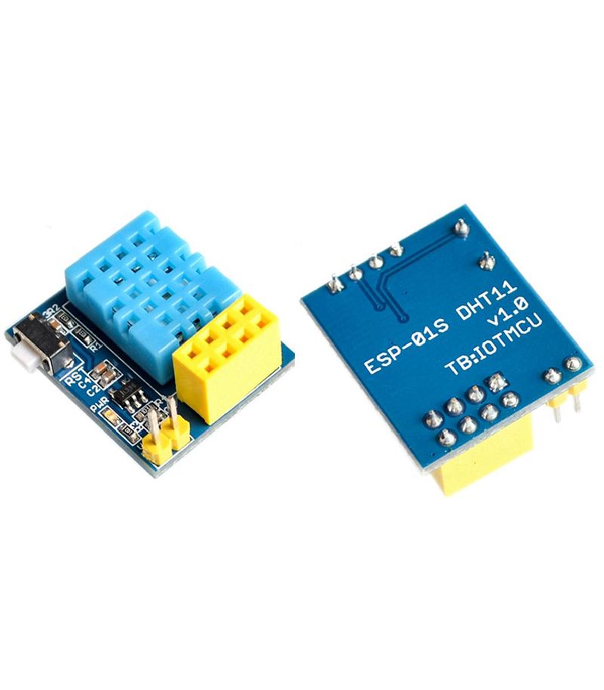 Цифровой датчик температуры и влажности ESP8266 ESP-01 DHT11.Модуль DHT11 (TB:IOTMCU) для ESP-01 и ESP-01S, с помощью которого можно собрать небольшую метеостанцию у себя дома. Контроллер: ESP-01 или ESP-01S Напряжение питания: 3.7 В – 12 В Датчики температуры и влажности: DHT11 Диапазон измерения: 20 % … 90 % Точность измерения температуры: +/- 2 C Точность измерения влажности: +/- 5% : 20 мм х 25 мм Этот модуль позволяет организовать небольшую метеостанцию, в качестве передающего устройства используется контроллер ESP-01 (ESP8266), а показания считываются с датчика DHT11. Собран на зеленом стеклотекстолите с небольшими габаритами 20 x 25 мм, большую часть места занимает датчик DHT11, рядом расположен разъем для подключения ESP-01(S) и разъем питания.