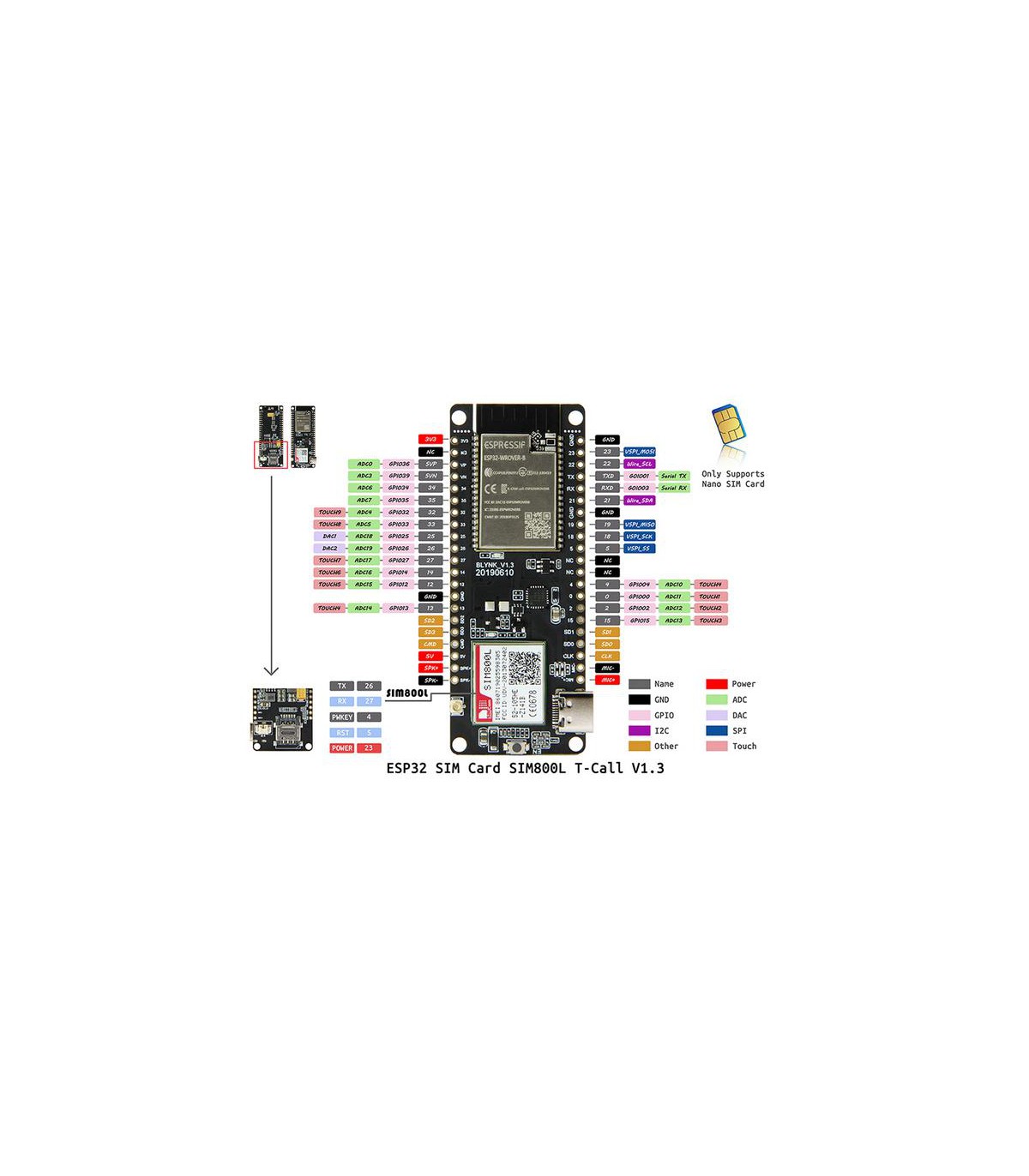 Отладочная плата ESP32 LILYGO TTGO T-Call V1.4 (17181)