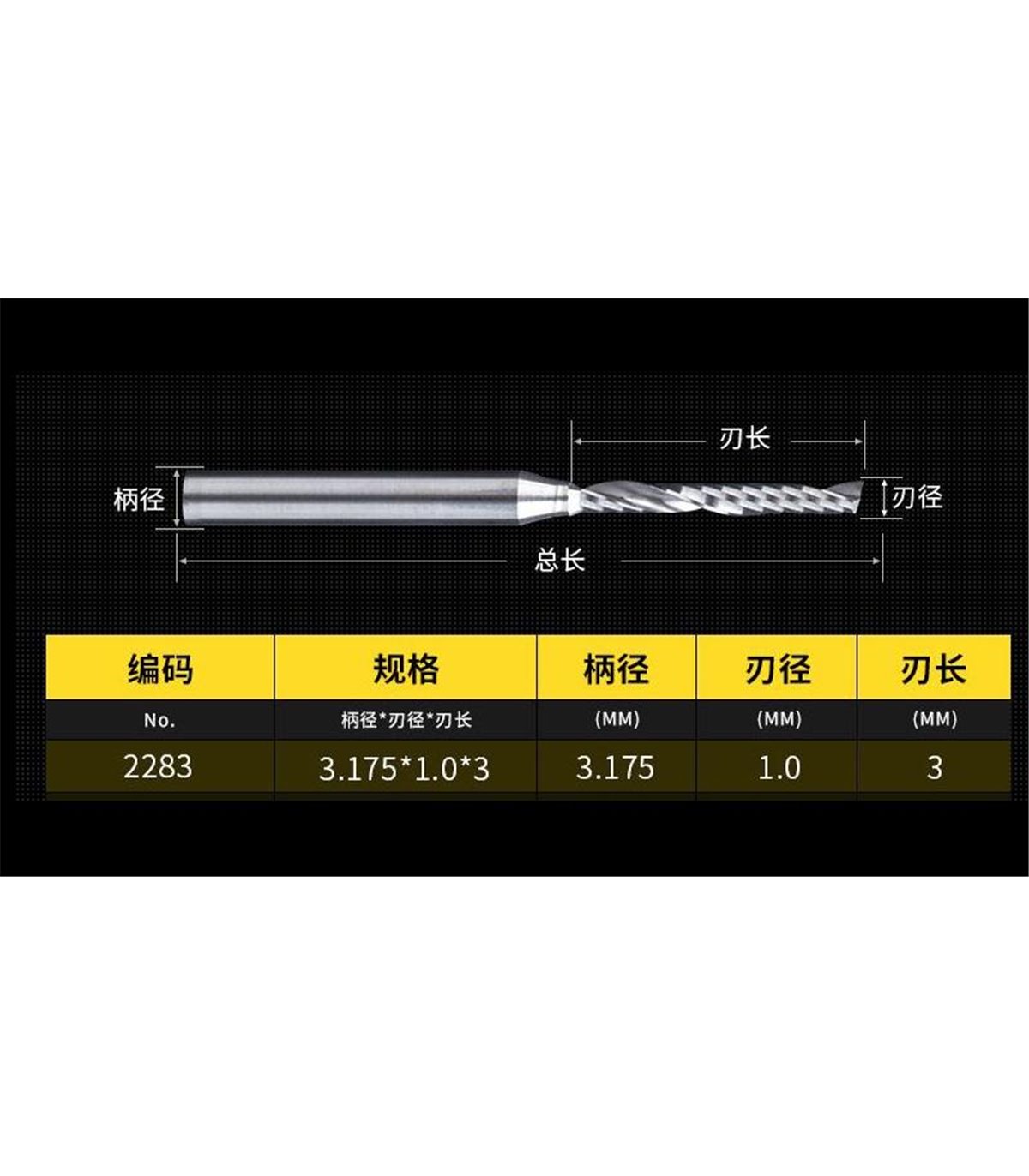Фреза однозаходная 3.175*1.0*3*38мм 2283 (16661)