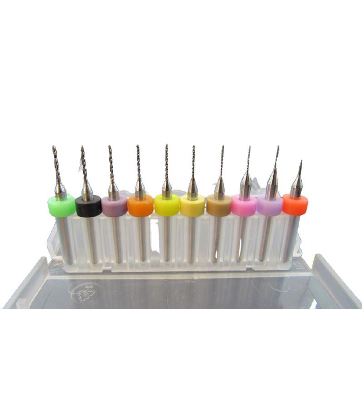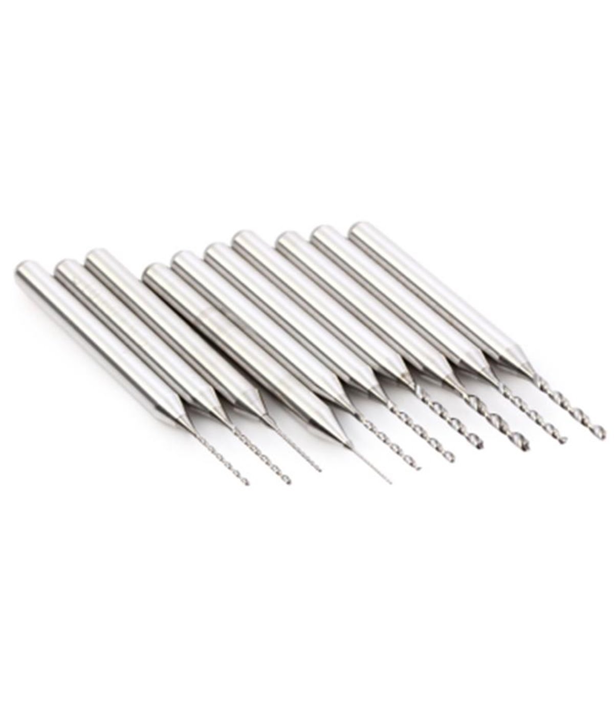 Набор сверл 0,3 мм - 1,2 мм (с шагом 0,1 мм, 10 штук в комплекте). Применяются в основном в станках с ЧПУ, сверлильных станках, т.п. устройствах.