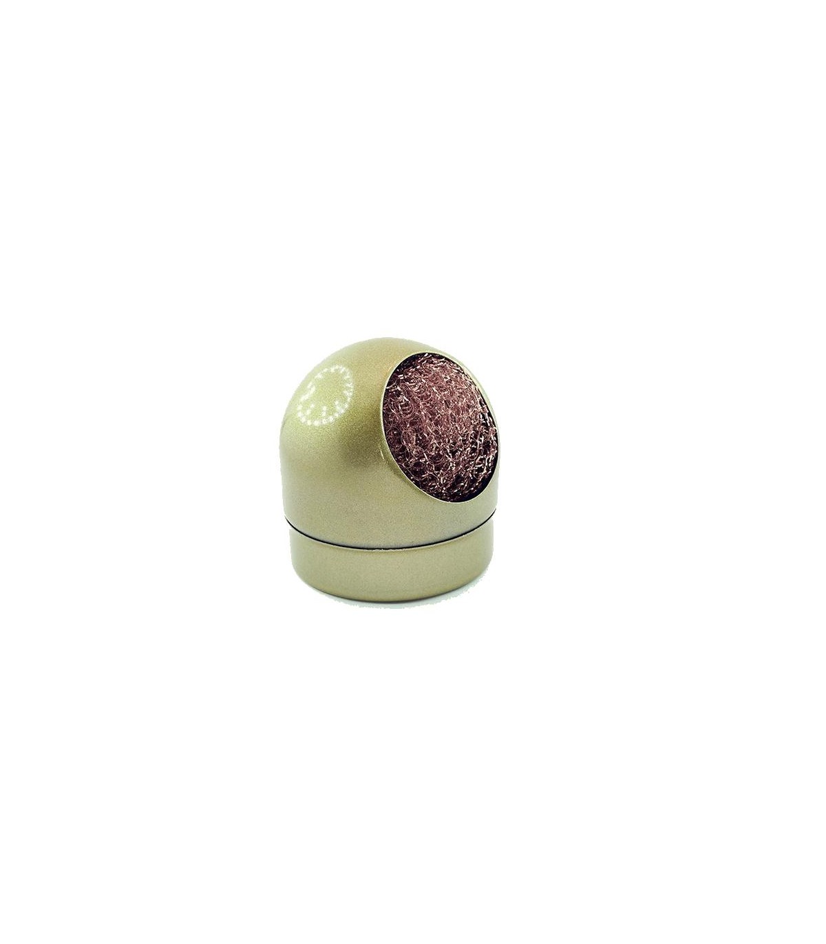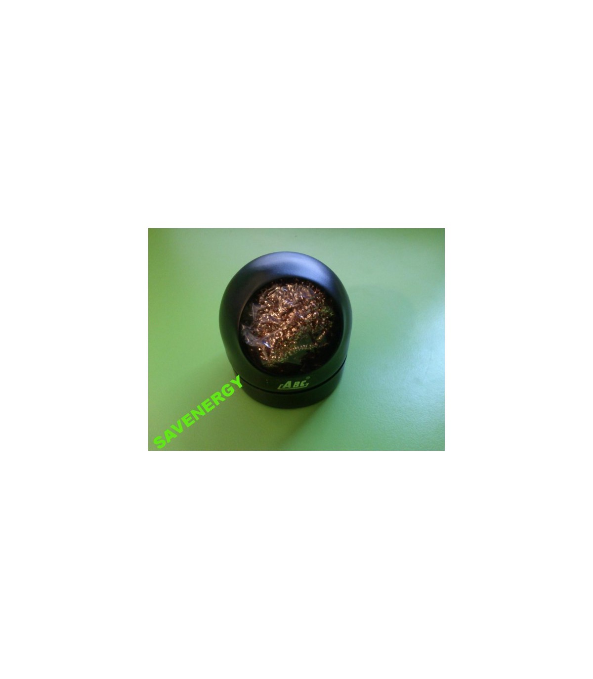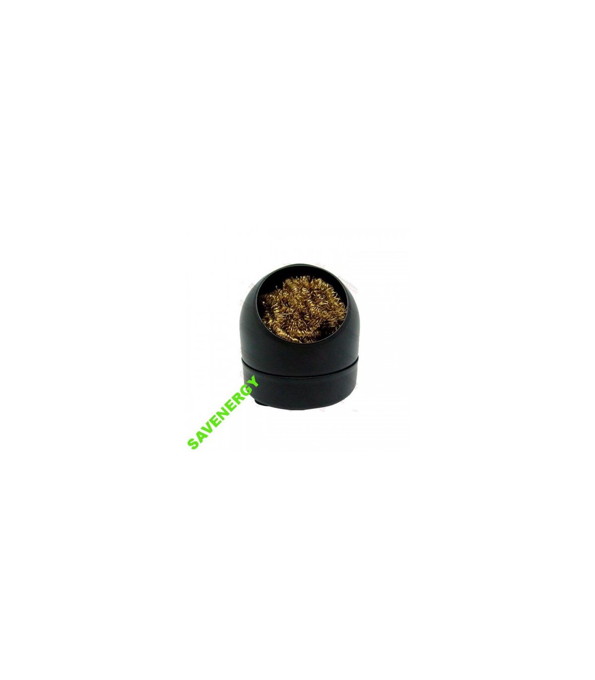 Губка из металлической проволоки для очистки жала паяльника от загрязнений: нагара, канифоля, излишка олова и т.д. Помещена в емкость, которая имеет съемное дно для избавления от накопившегося мусора. Емкость также снабжена антискользящим покрытием.