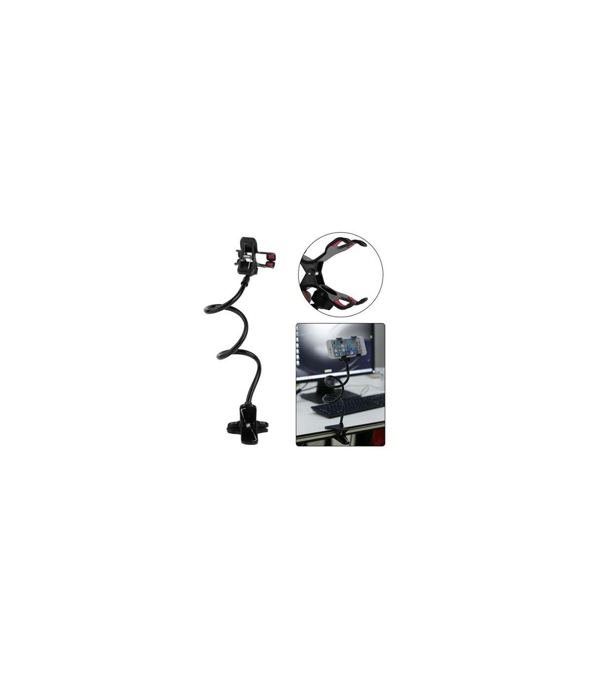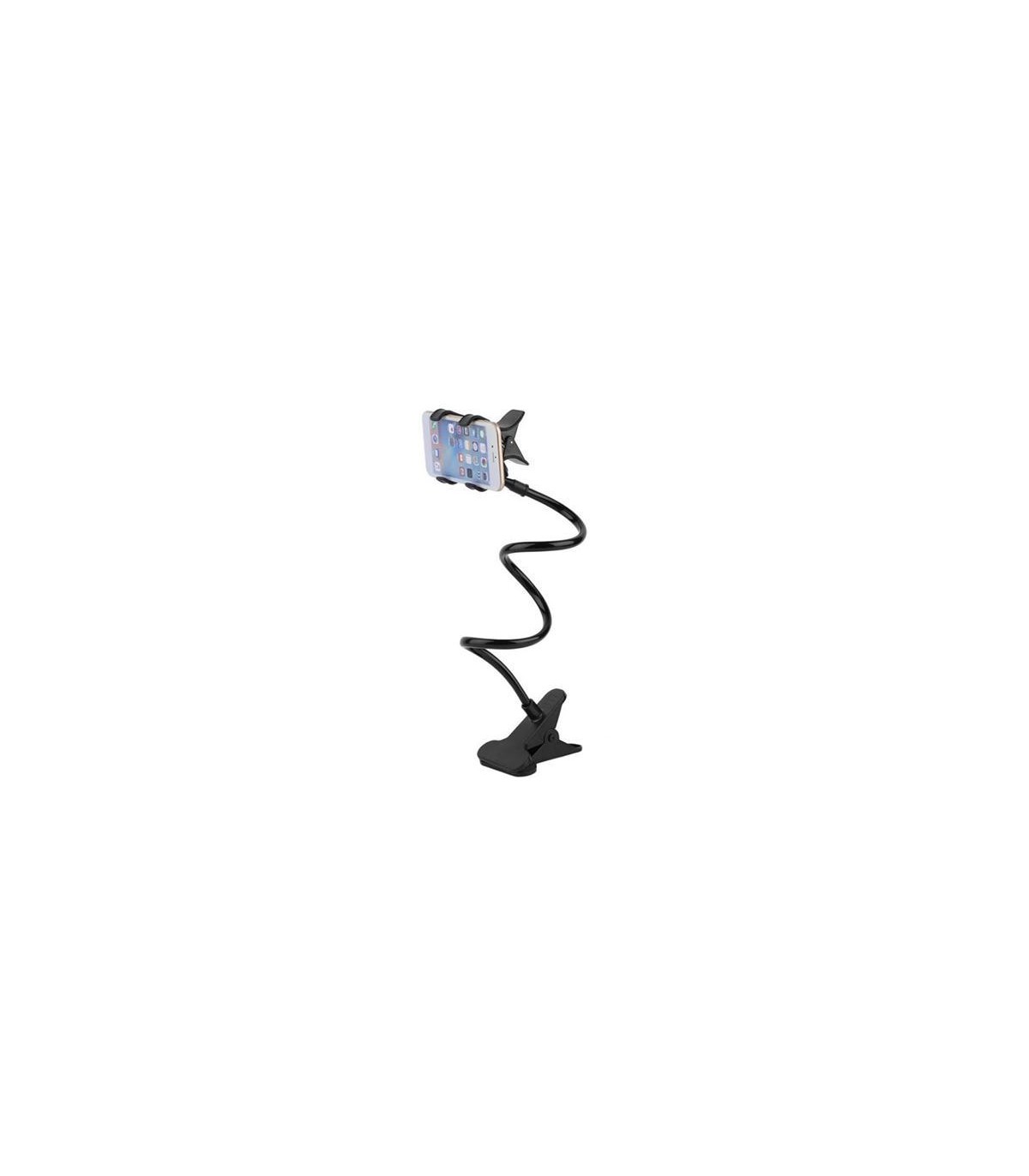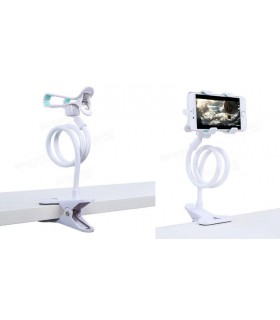 Гибкий держатель для телефона смартфона. Цвет - черный. Прочный и надежный, используется при съемках видео или фото. Экономичный и простой в использовании. Состоит из прищепки на стол, гибкого держателя и прищепки на телефон. Прищепка телефона крепится с помощью гайки. Длина держателя - 60, максимальный размер телефона - до 6 дюймов, оптимальный - до 5.5 дюймов, максимальный размер крепильной поверхности - 3см.