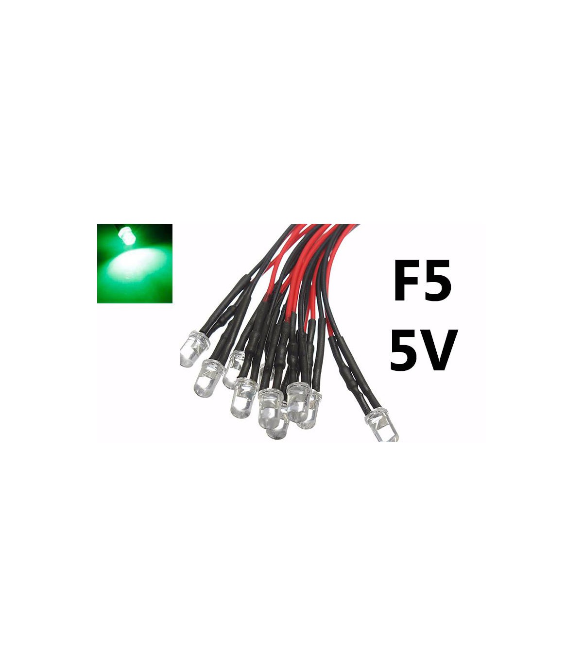 Светодиод LED F5 5мм 5V зеленый с проводом 18-20см.