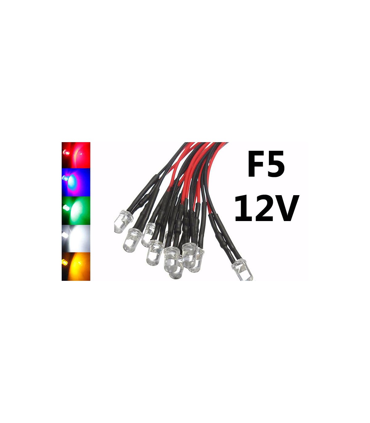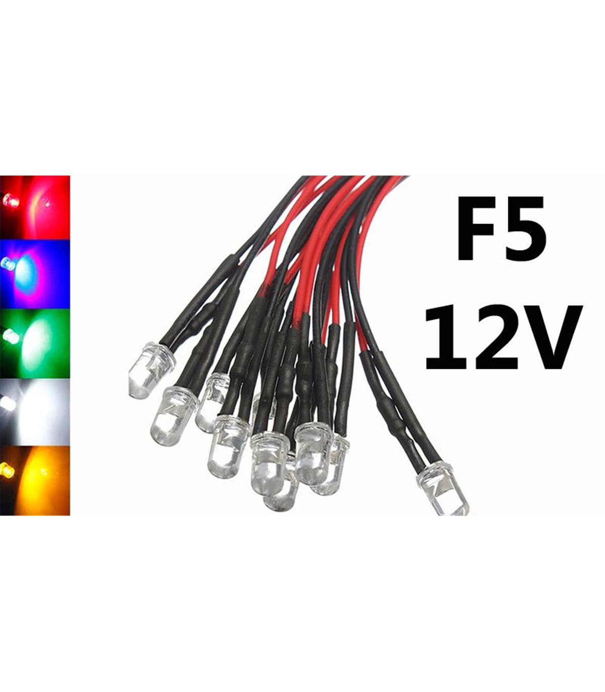 Светодиод LED F5 5мм 12V разноцветный с проводом 18-20см (15862)