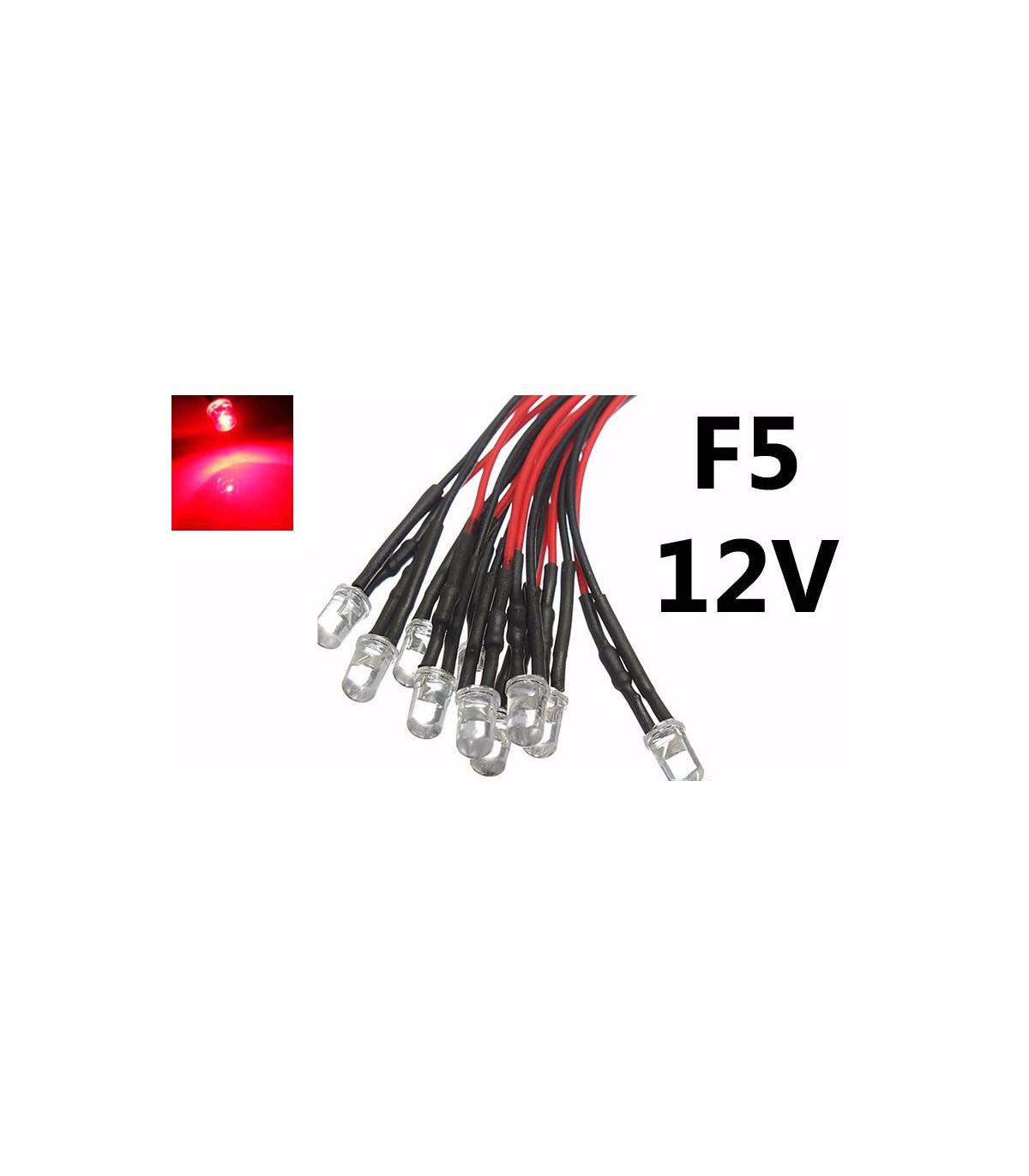 Светодиод LED F5 5мм 12V красный с проводом 18-20см.
