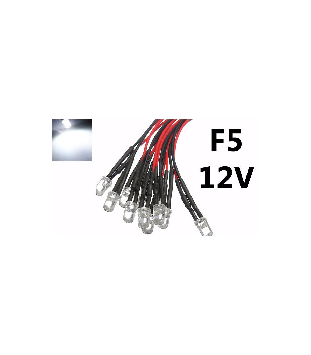 Светодиод LED F5 5мм 5V белый с проводом 18-20см.