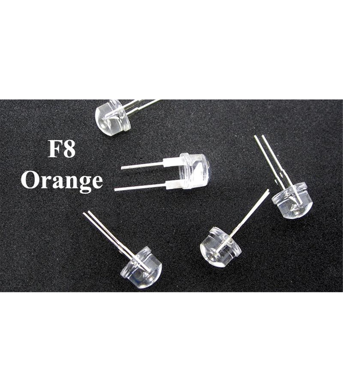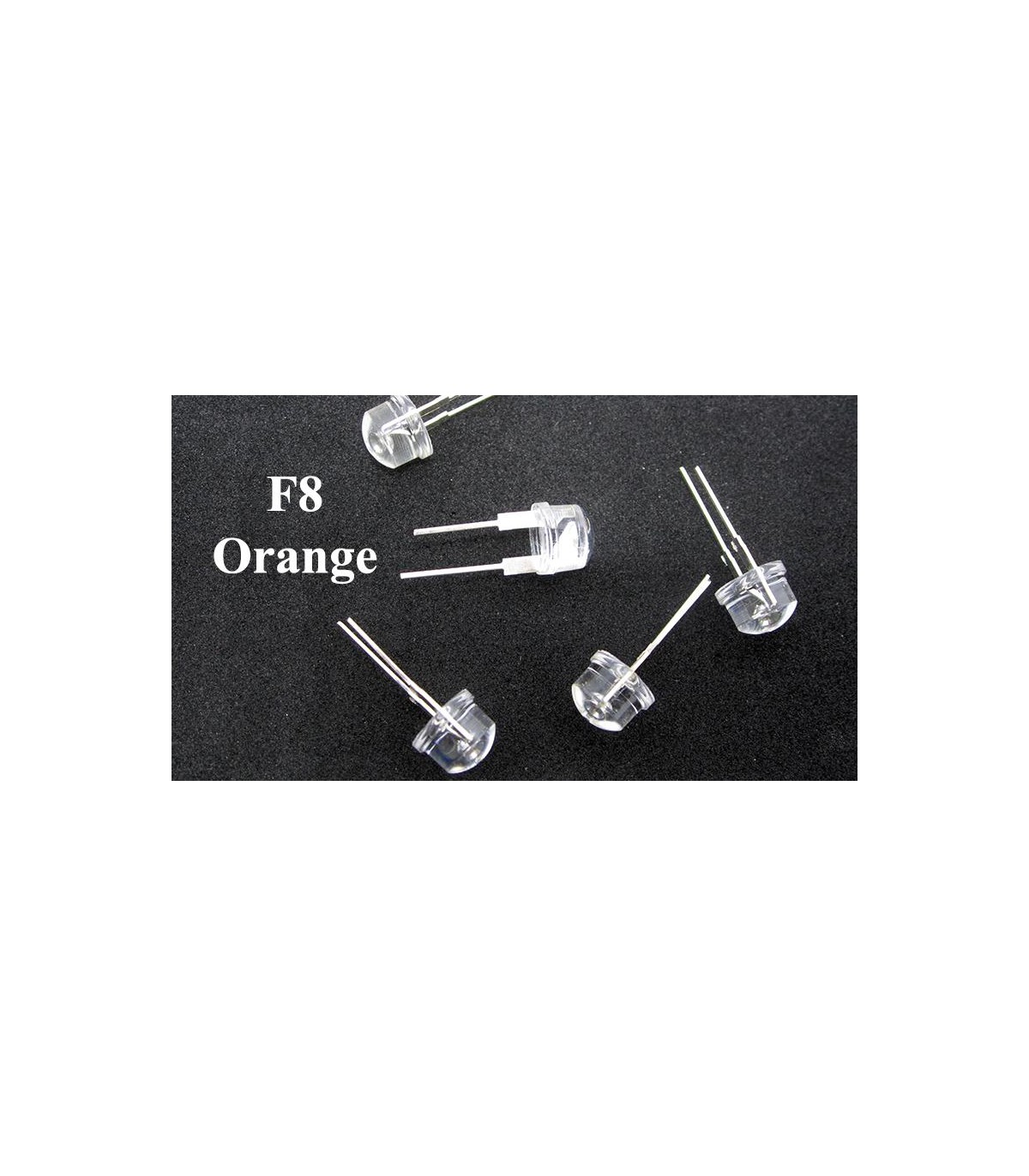 Светодиод F8 3V 8mm оранжевый прозрачный.