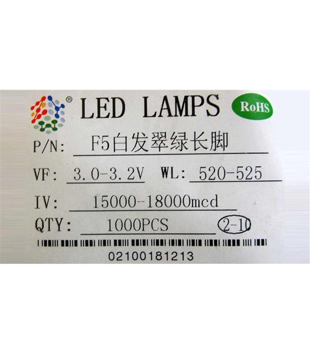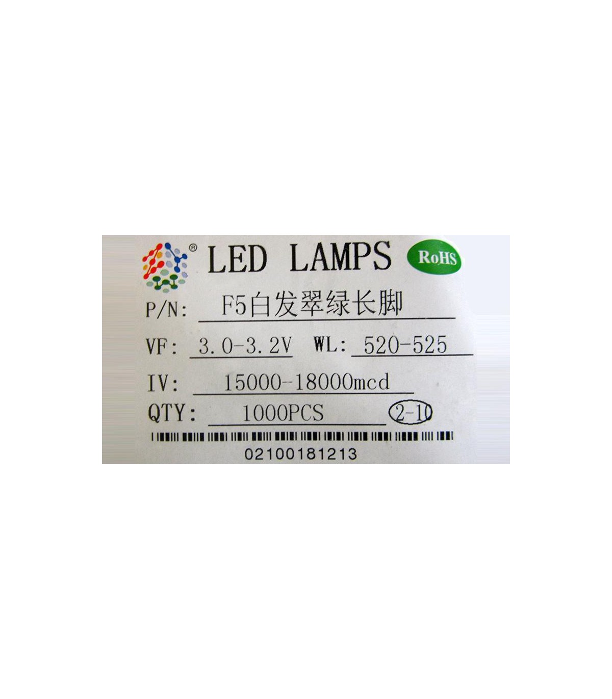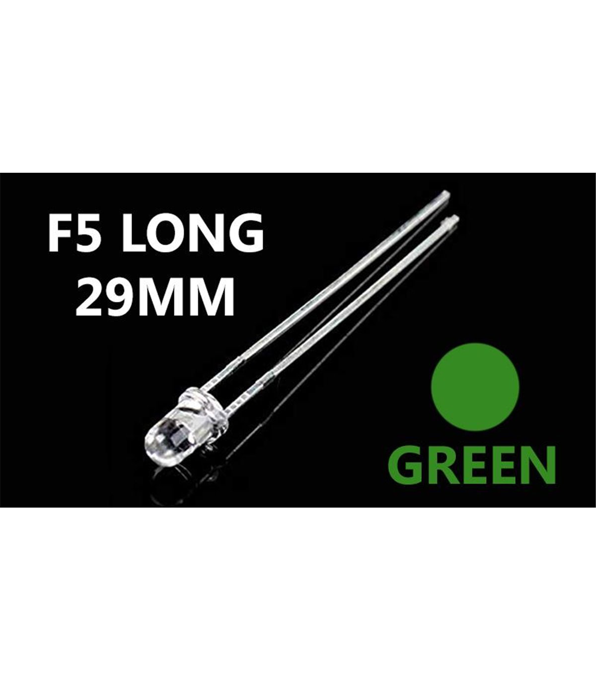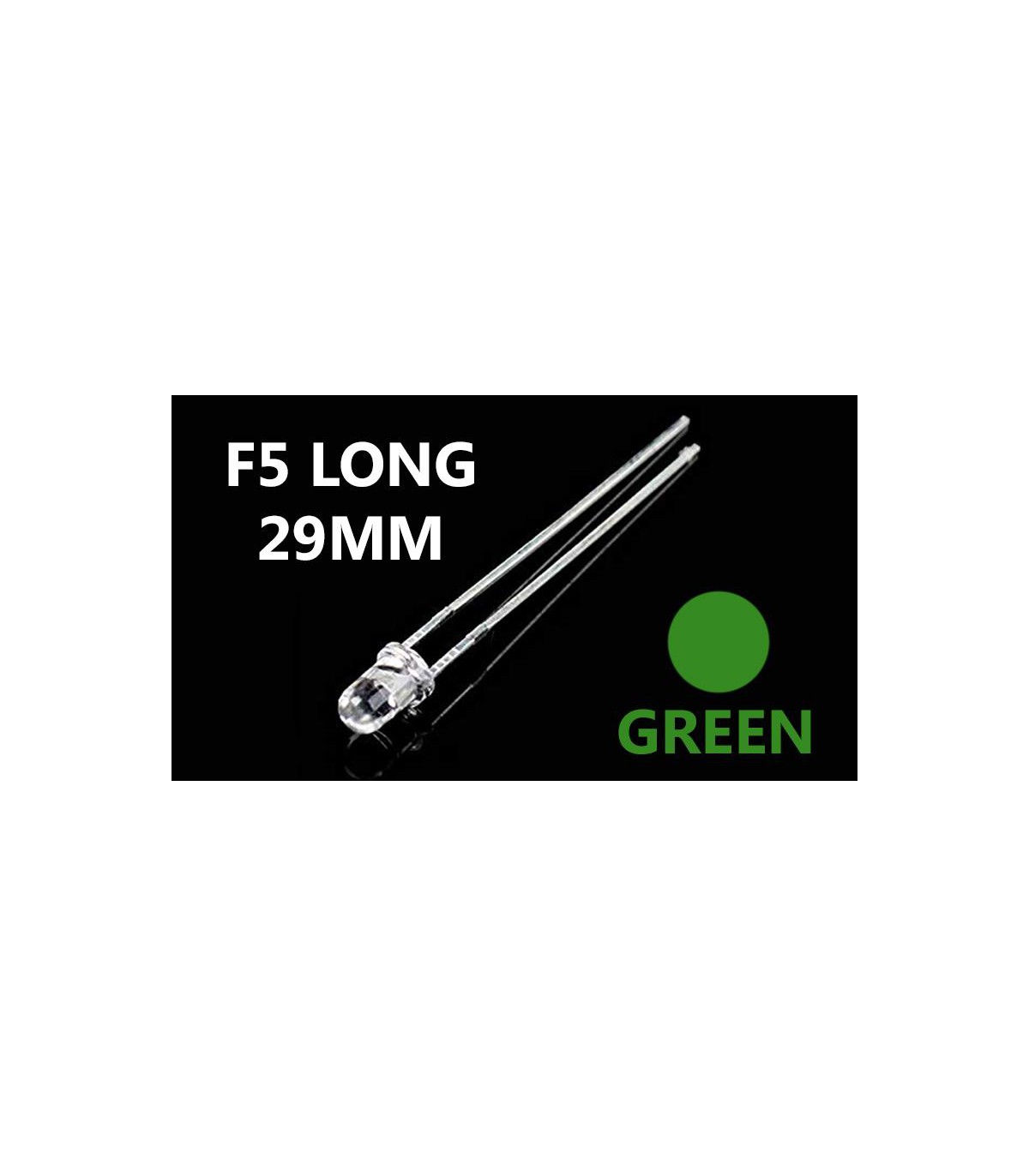 Светодиод F5 5мм long green зеленый прозрачный длинные ножки 10шт.