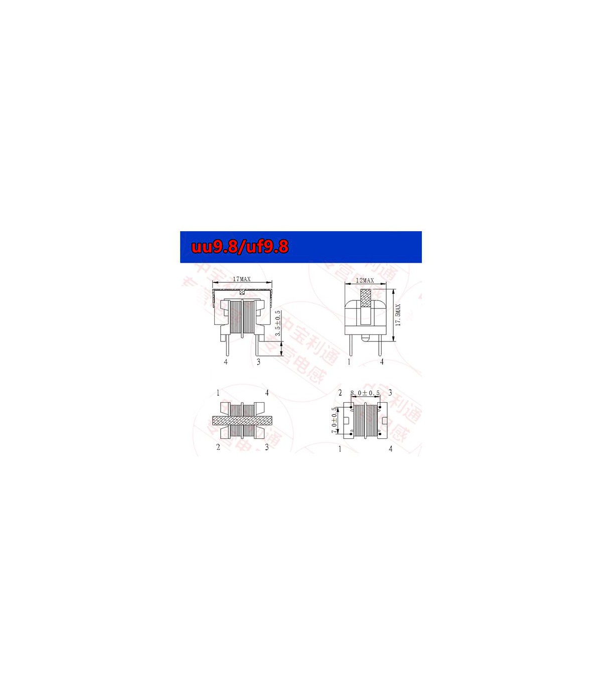 Cинфазный индукционный фильтр UU9.8 UF9.8 25MH 7*8мм. Размеры указаны на фото.