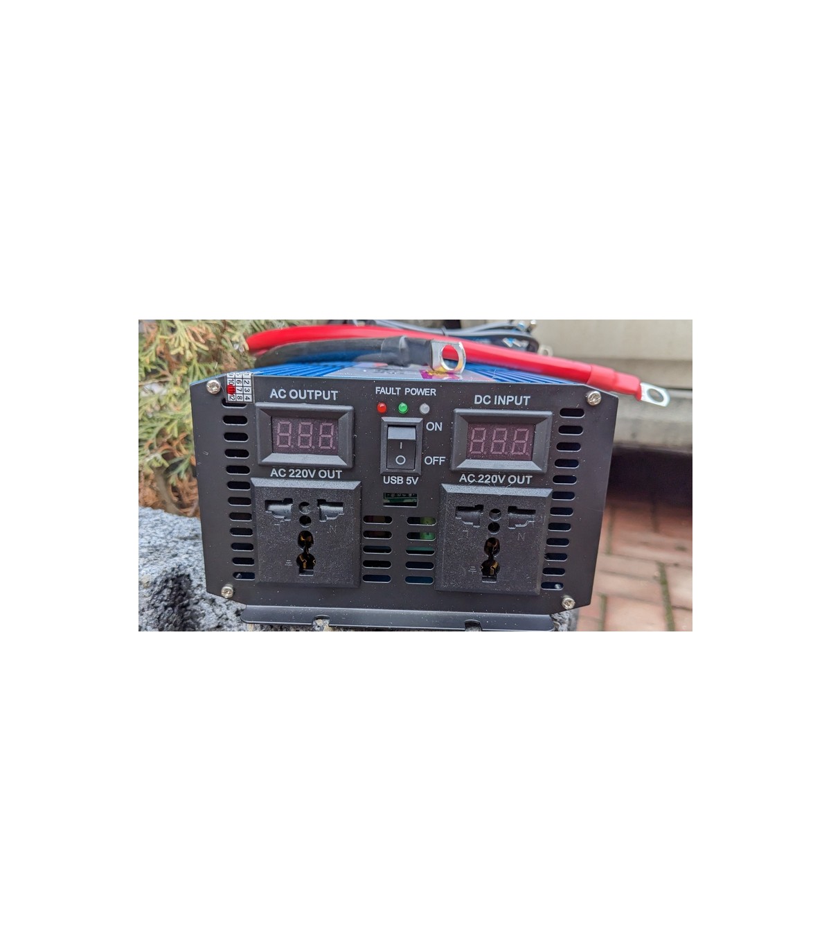 Инвертор преобразователь позволяет подключать электрические устройства, такие как аудио-, видео-, бытовая техника, рабочие инструменты и многое другое. Устройство имеет в комплекте кабели питания, которые можно подключать к сети с напряжением 12V, 24V (в зависимости от модели) или 220V (в таком случае работает как UPS). На другой стороне инвертора расположены розетки, индикаторы режимов работы, кнопка включения устройства, вольтметр выходного напряжения, вольтметр, показывающий уровень заряда батареи и USB-выход. В задней части алюминиевого корпуса расположен также вентилятор для охлаждения преобразователя во время работы и предохранитель. Инвертор работает в спарке со свинцово-кислотными аккумуляторами или сборкой литий-ферумных аккумуляторов 4s, имеет встроенное зарядное устройство и защиту от переразряда, что максимально продлевает жизнь батареи. Особенностью является зарядное устройство, встроенное в инвертор.