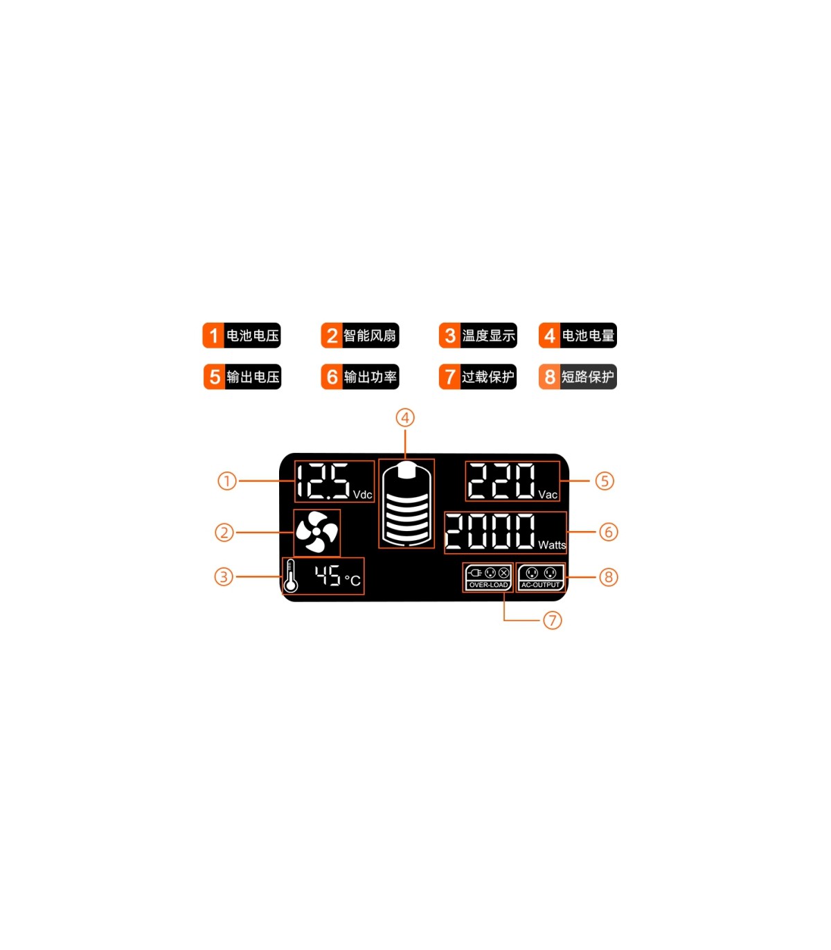 - 2 ЖК-дисплея с мониторингом: напряжения на аккумуляторе, выходного напряжения, температуры и потребляемой мощности в реальном времени.