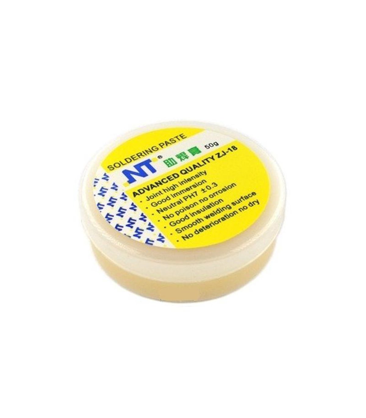 Флюс для пайки ZJ-18 (50g). Флюс для пайки (PH 7+/-0.1). Технические характеристики Нейтральный флюс не требующий смывания Не токсичен Можно использовать для работы с SMD и BGA Не засыхает