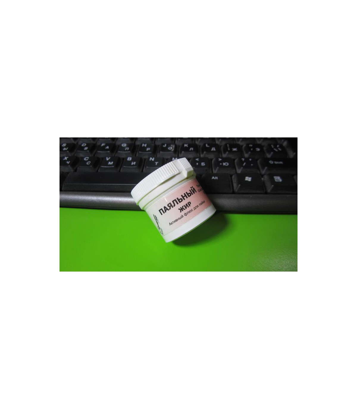 Паяльный жир активный универсальный флюс для пайки емкостью 30 мл. Применяется для пайки железа, меди и ее сплавов. Состав: Канифоль, стеарин, хлорид цинка, нашатырь. Перед пайкой флюс рекомендуется тщательно перемешать.