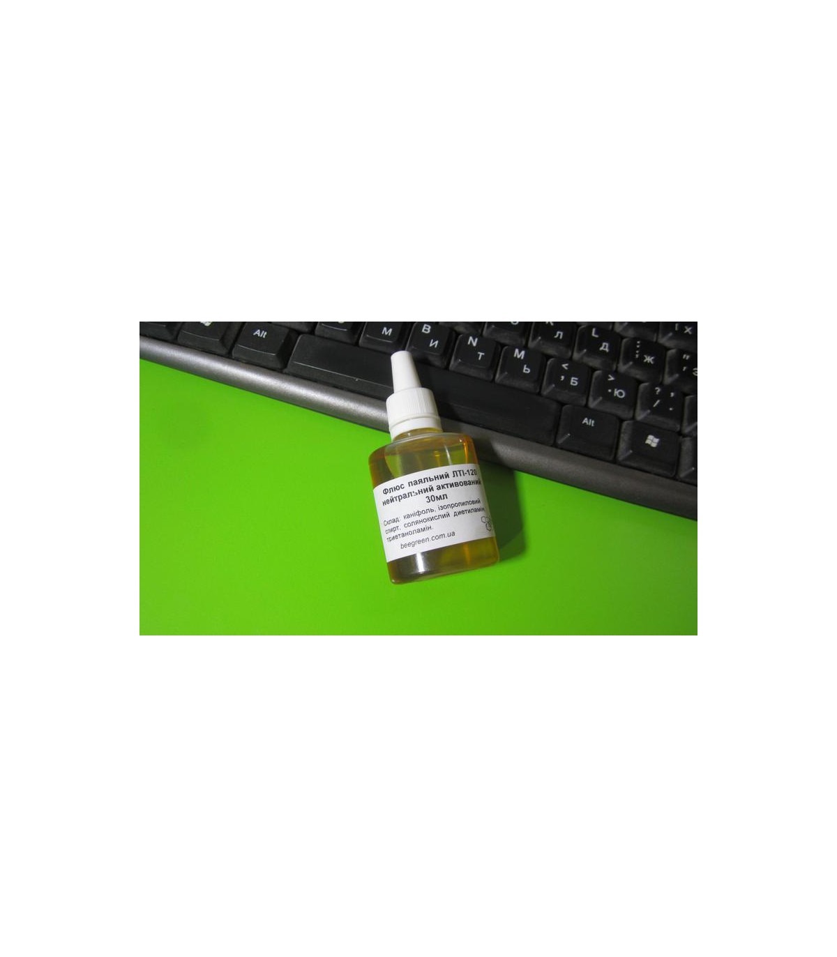 Флюс паяльный ЛТИ-120 нейтральный активный 30мл. Флюс ЛТИ применяется для пайки элементов радиомонтажа, печатных плат, углеродистых сталей, цинка легкоплавкими припоями. Состав: канифоль сосновая, спирт этиловый, активаторы (триэтаноламин, диэтиламин гидрохлорид). Остатки флюса смывать не обязательно, при желании легко смываются спиртом, ацетоном и т.п.