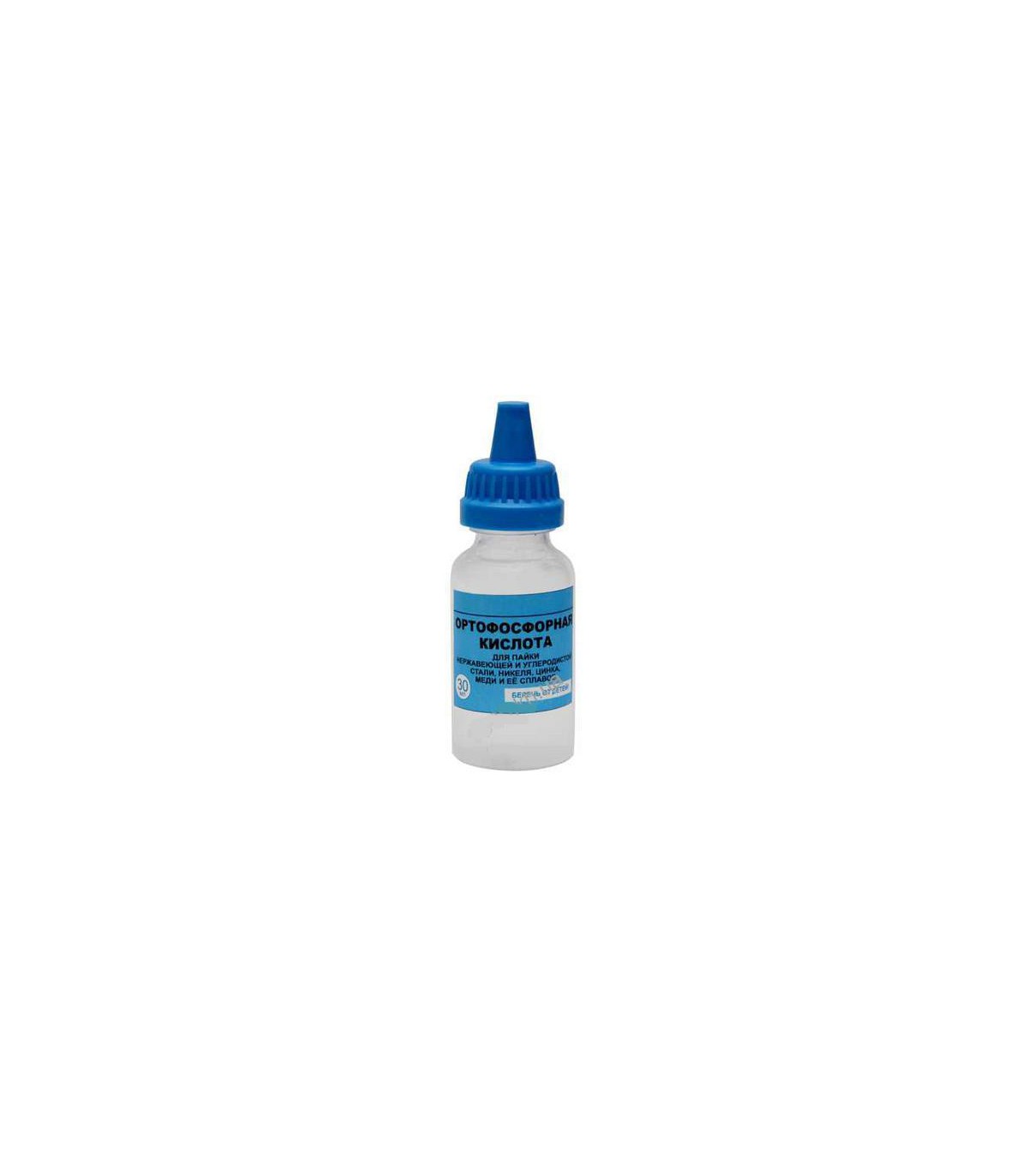Ортофосфорная кислота 30мл Украина.Ортофосфорная кислота (фосфорная кислота) – является неорганической кислотой средней силы.Брутто-формула: Н3РО4.Кислота представляет собой прозрачные гигроскопические кристаллы, а при температуре выше 42оС начинает плавится и превращается в вязкую бесцветную жидкость, без запаха.Применение:- в пищевой промышленности применяется в качестве пищевой добавки Е338, используется как регулятор кислотности,- в стоматологии используется для очистки поверхности зубов,- в фармацевтической промышленности в качестве одного из компонентов различных лекарственных средств,- в сельском хозяйстве как компонент удобрений, выпойка для животных,-в авиационной промышленности – в составе различных гидрожидкостей,- используется для изготовления косметики, различных моющих средств (для удаления ржавчины),-используется для пропитки древесины, благодаря чему она становится негорючей.Физические и химические свойства.Ортофосфорная кислота хорош растворима в воде и различных органических растворителях, например, этаноле.