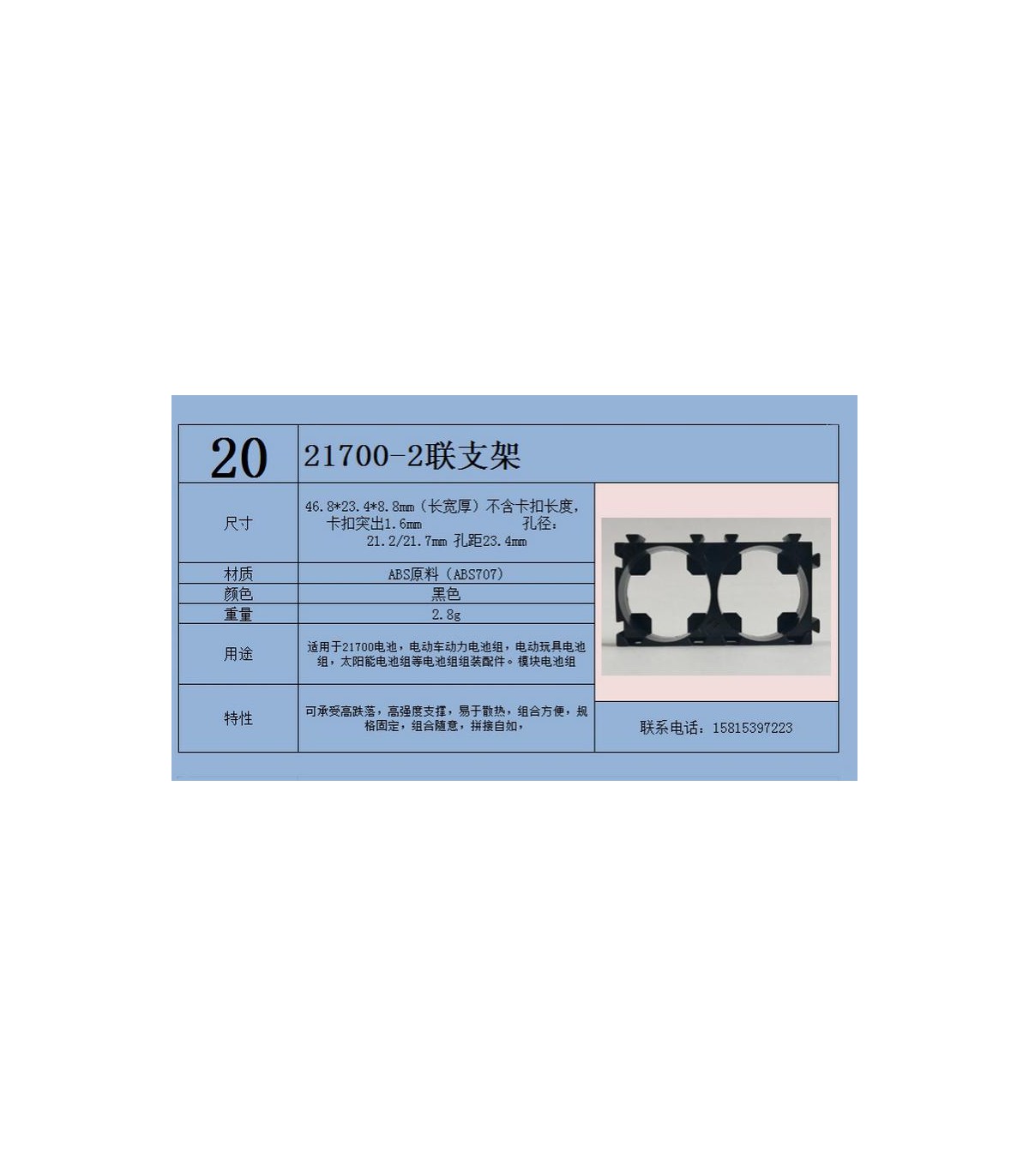 Модульный крепеж холдер держатель конструктор на два аккумуляторы 21700 пара (17406)