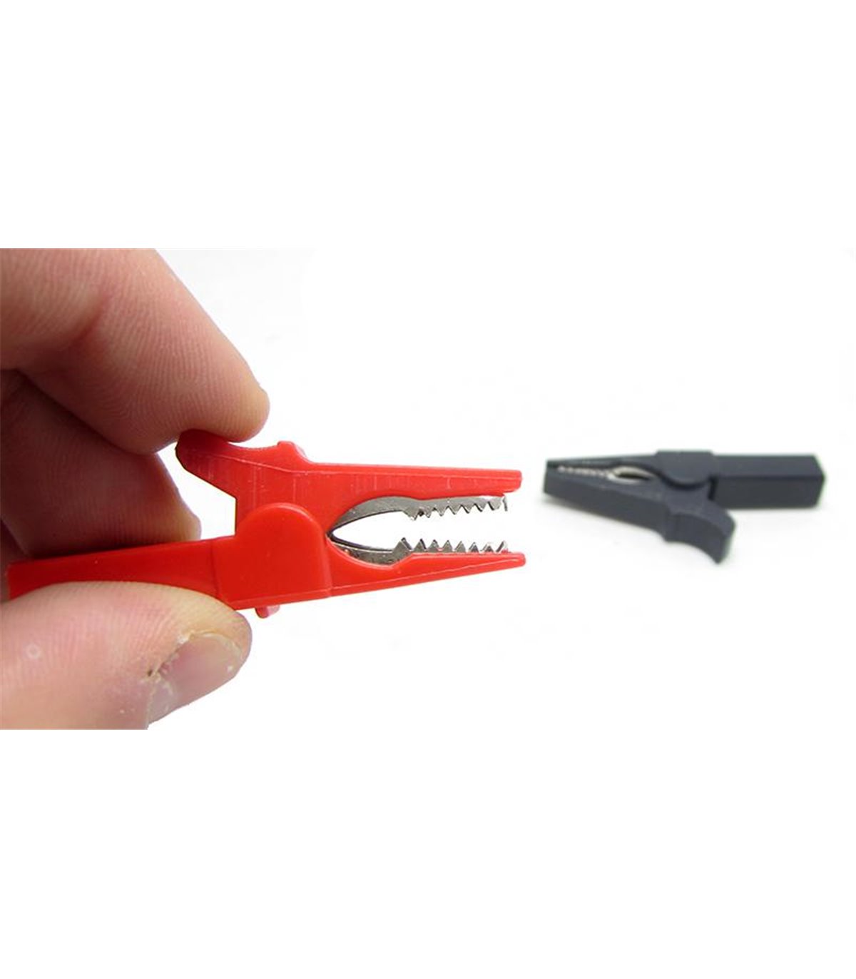Пара прищепок зажимы для приборного блока 55мм 32A. Контакт под банан 4мм на большой ножке прищепки. Материал корпуса - пластик.