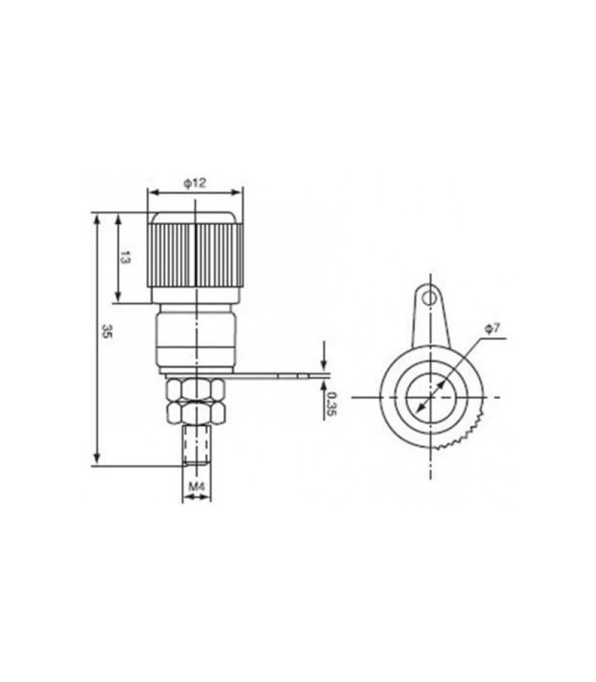 Клеммы на приборный блок. Пара: красная + черная. Размеры указаны на фото. Можно использовать вместе с бананами диаметром 4мм.