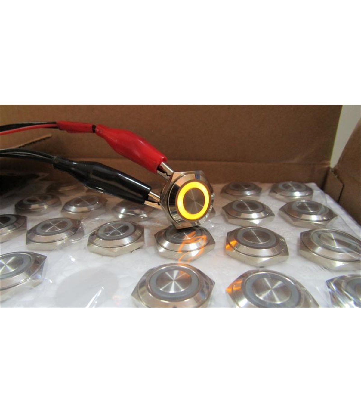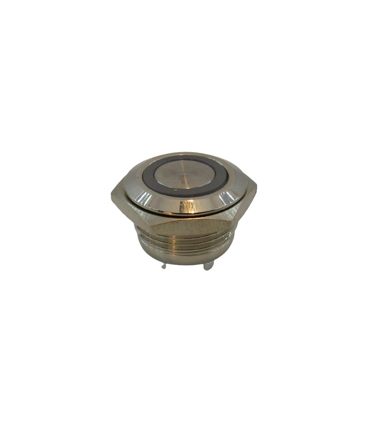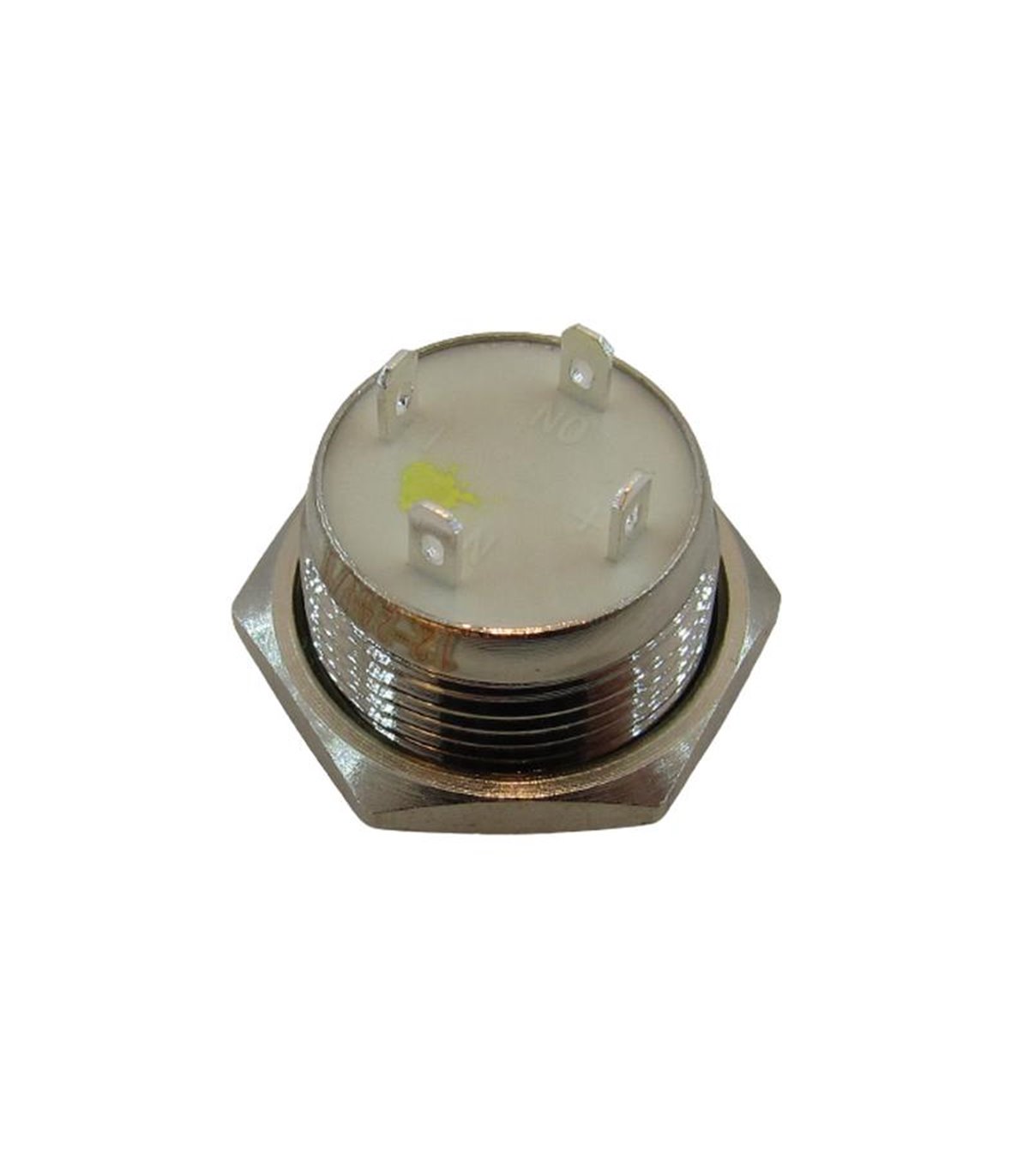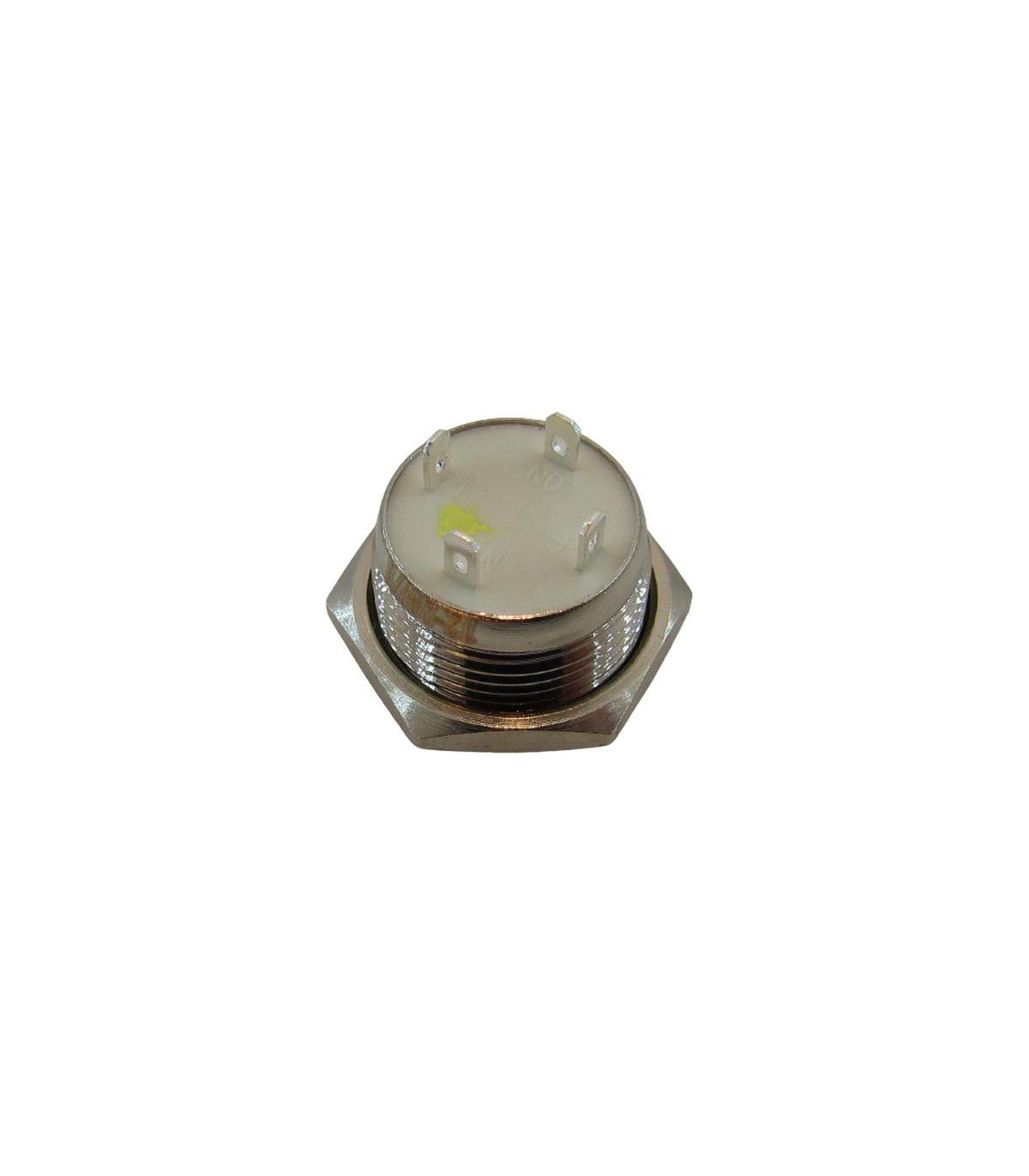 Кнопка антивандальная тактовая без фиксации хром 16 мм жёлтый цвет.