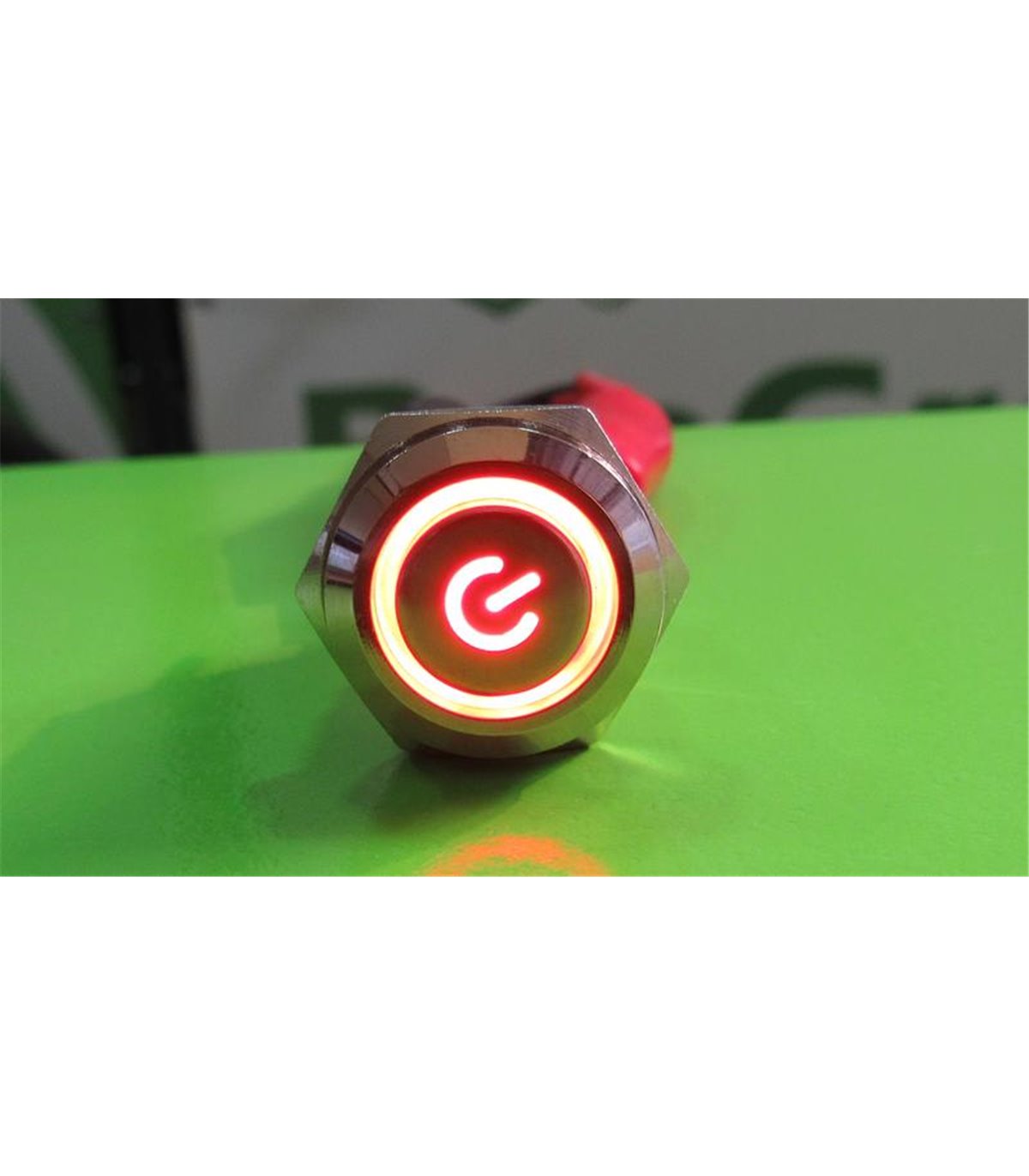 Антивандальная кнопка с фиксацией и красной подсветкой 16мм LED DC 9-24V.