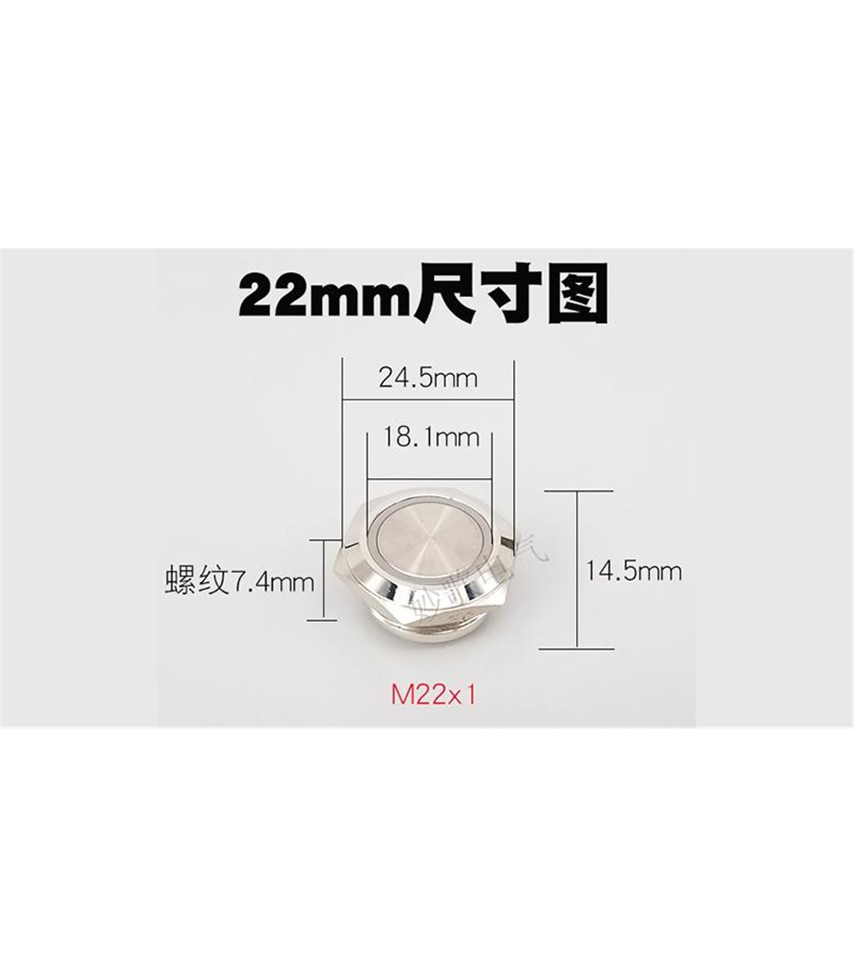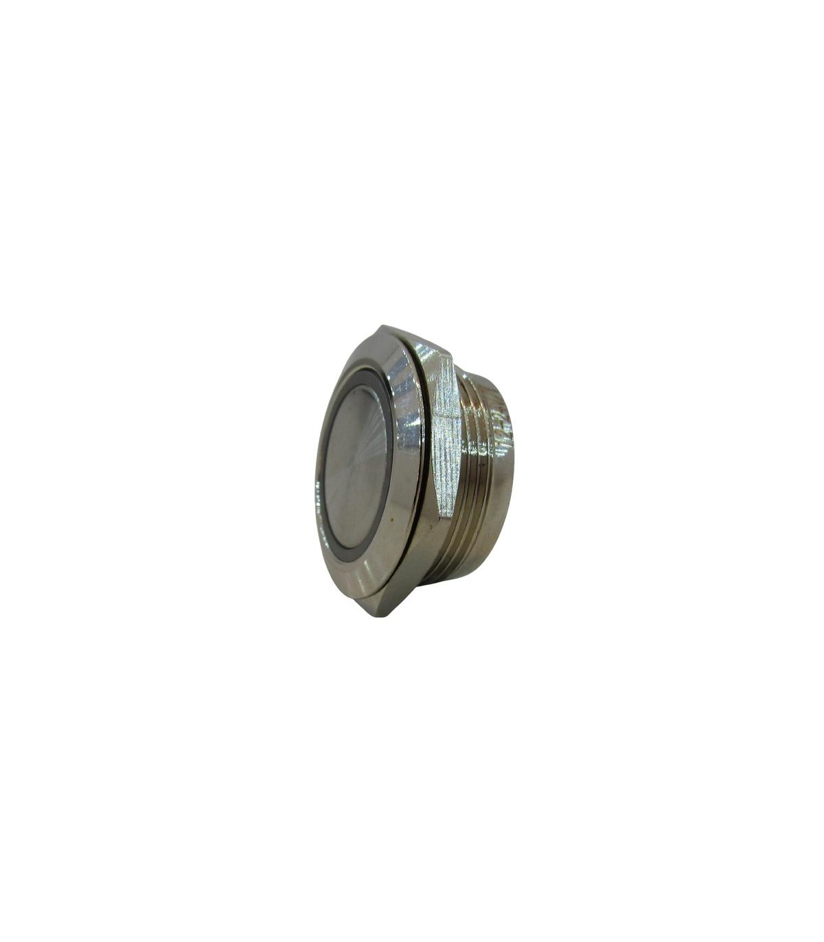 Кнопка антивандальная с фиксацией, влагозащищенная IP65. Она имеет металлический корпус. Натискна часть - плоская. Кнопка работает на замыкание. Монтажный диаметр - 22мм. Крепление - металлическая гайка