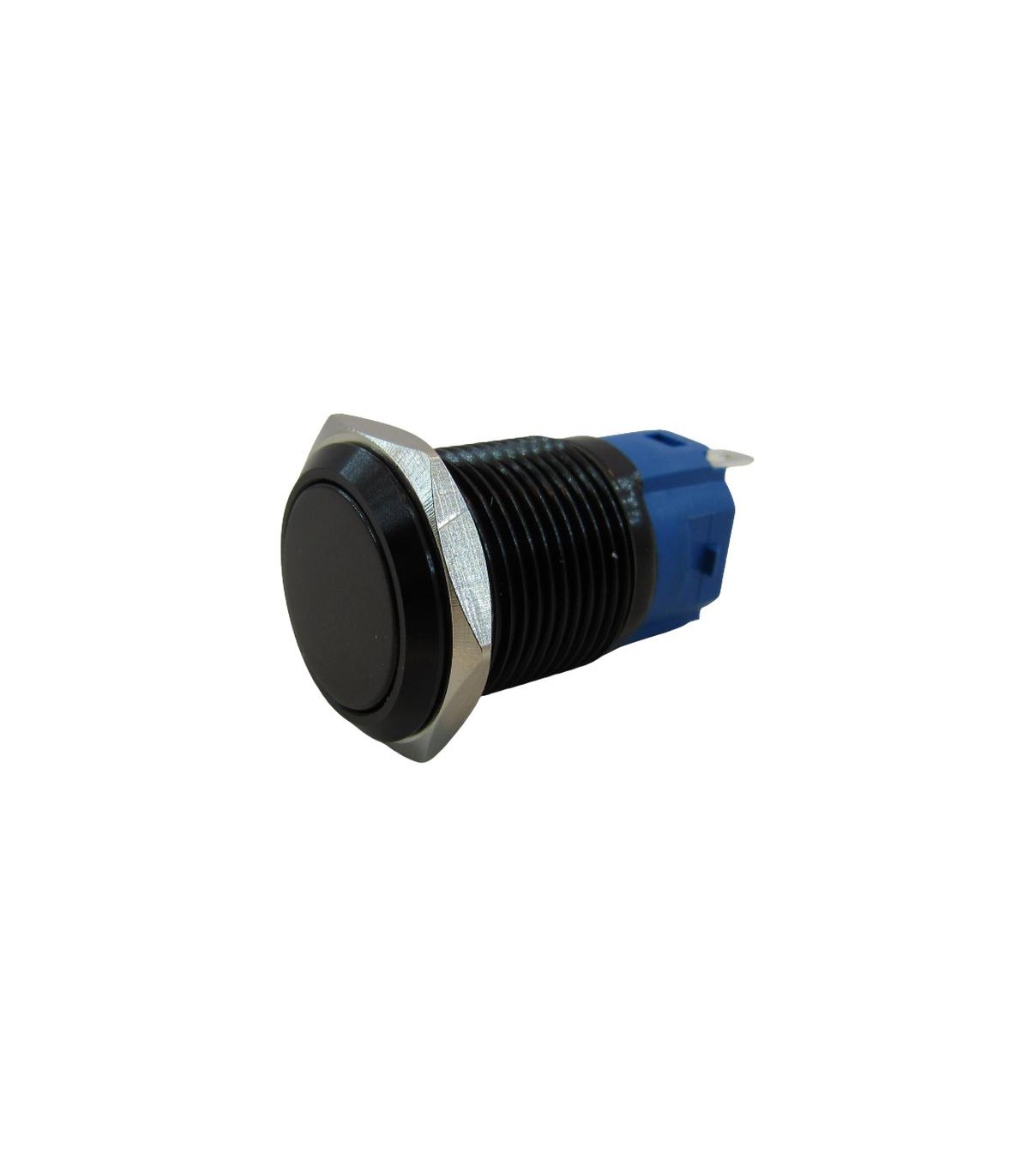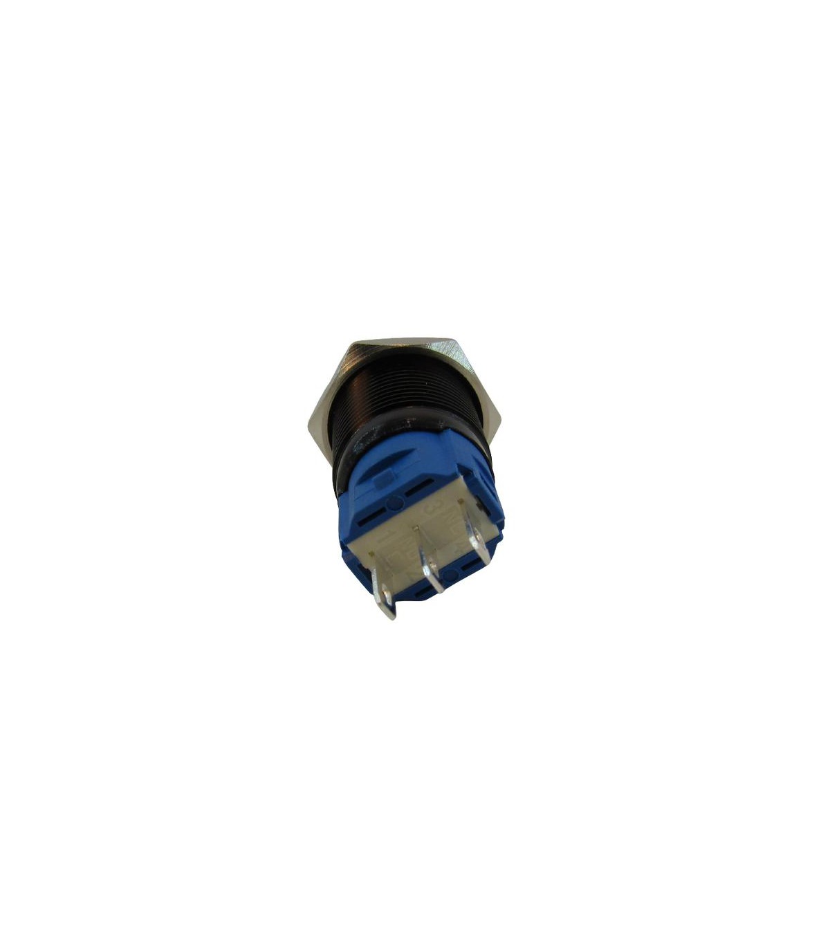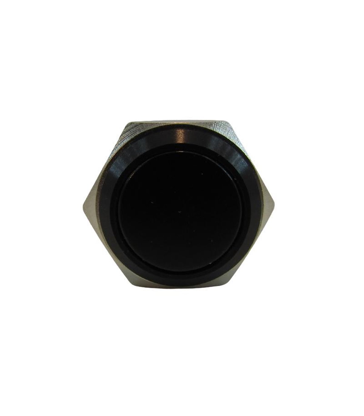 Кнопка антивандальная 16мм черная selflock с фиксацией 220VAC 5pin. Без подсветки.Кнопка антивандальная с фиксацией, влагозащищенная IP65.Она имеет металлический корпус.Нажимная часть - плоская.Кнопка работает на замыкание.Монтажный диаметр - 16 мм.Крепление - металлическая гайка.