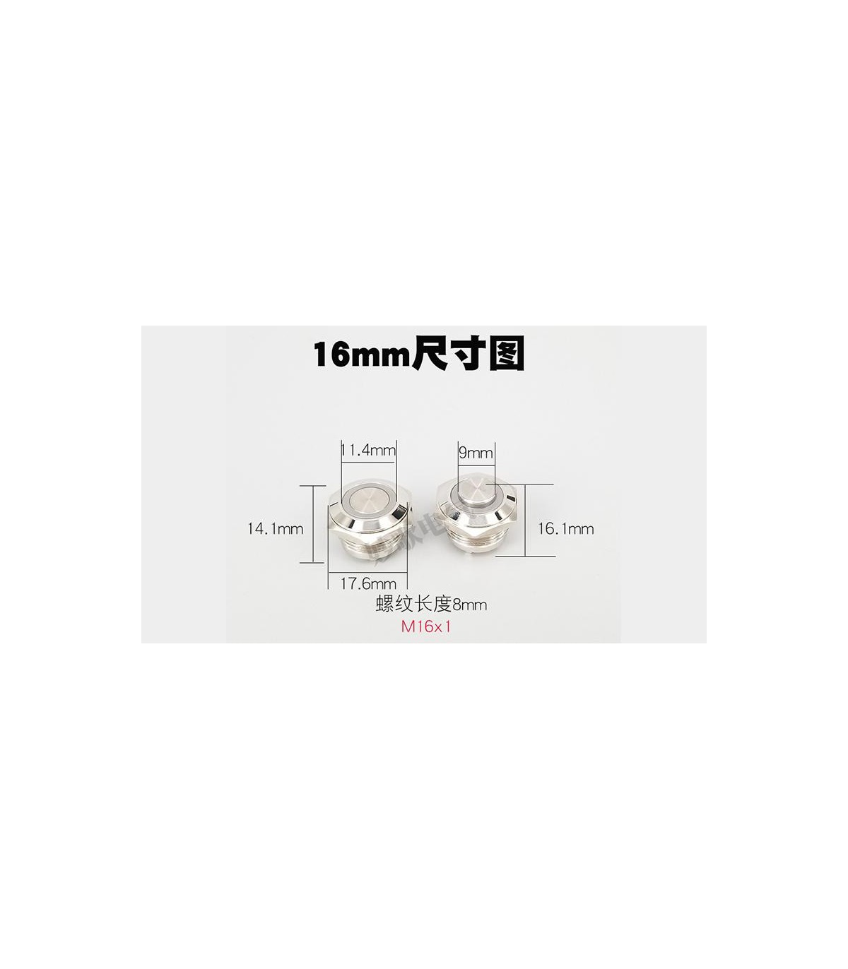 Кнопка антивандальная с фиксацией, влагозащищенная IP65. Она имеет металлический корпус. Натискна часть - плоская. Кнопка работает на замыкание. Монтажный диаметр - 16 мм. Крепление - металлическая гайка