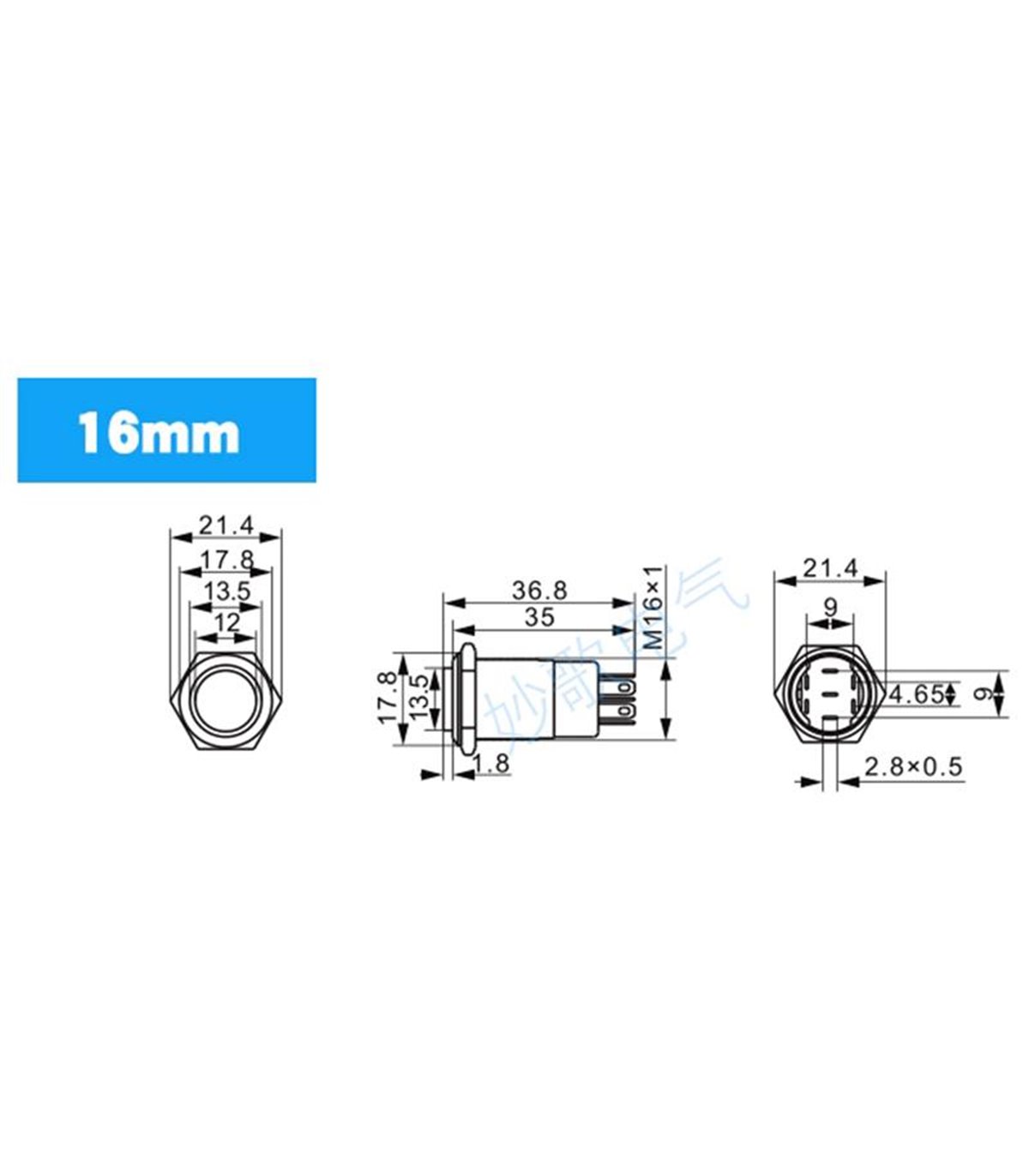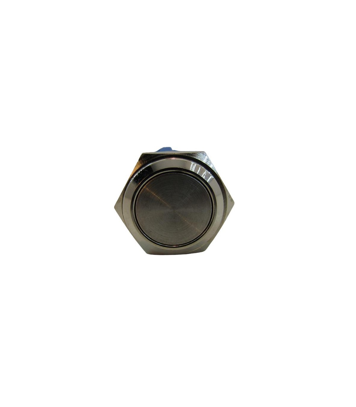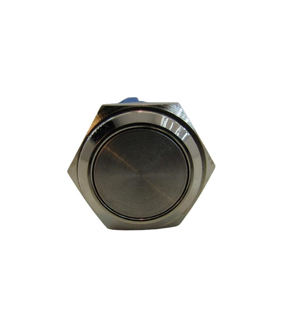 Кнопка антивандальная с фиксацией, влагозащищенная IP65. Она имеет металлический корпус. Натискна часть - плоская. Кнопка работает на замыкание. Монтажный диаметр - 16 мм. Крепление - металлическая гайка