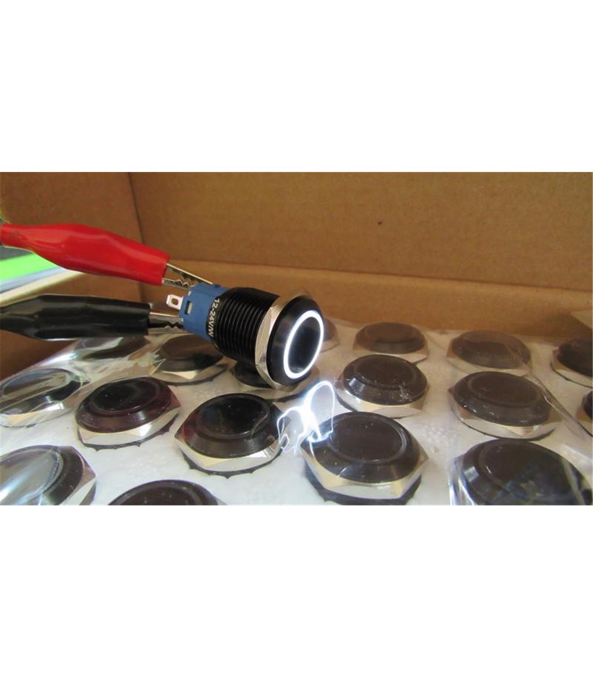 Кнопка антивандальная тактовая без фиксации черная 16 мм белый цвет
