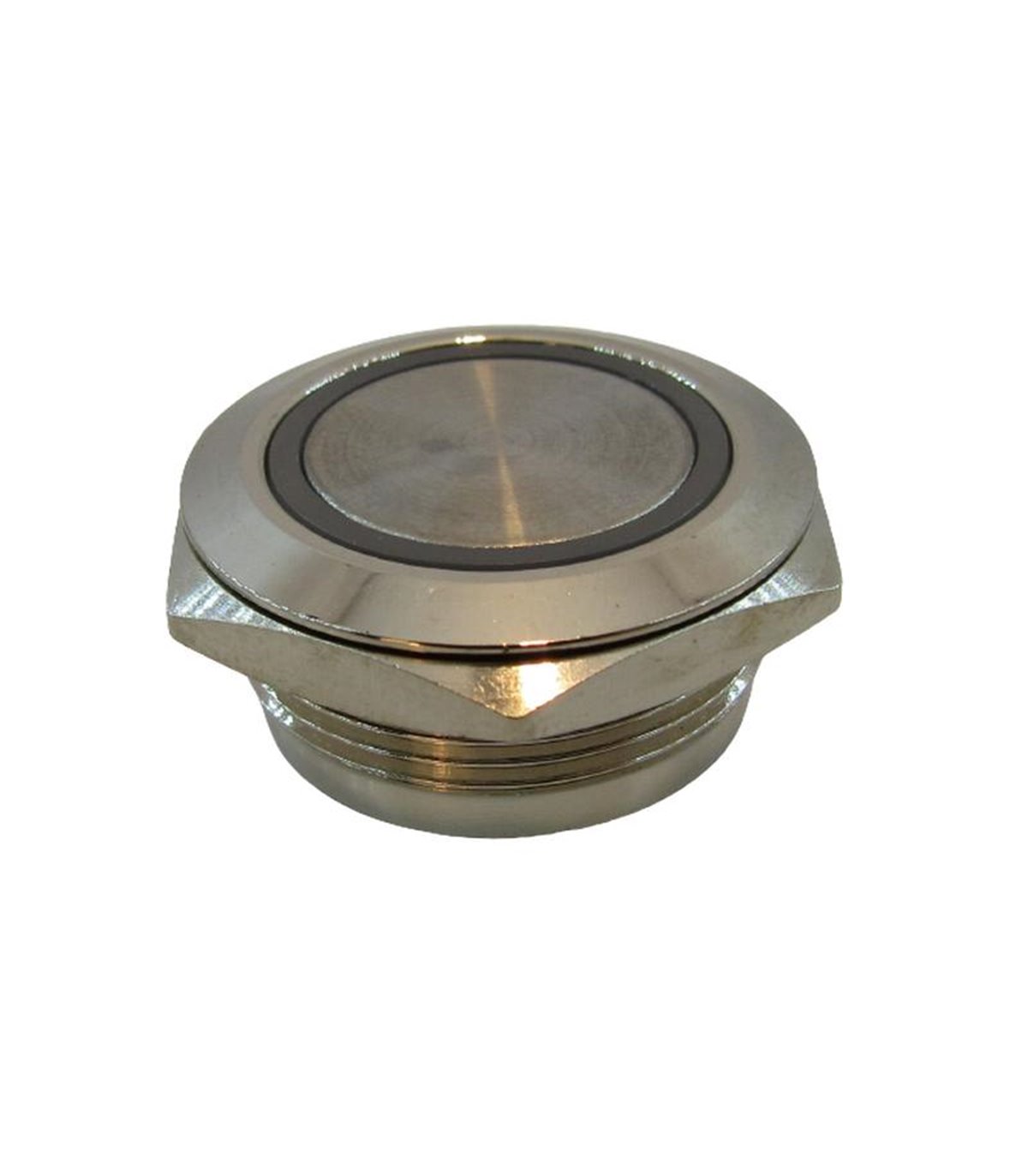 Кнопка антивандальная тактовая без фиксации хром 22 мм синий цвет.