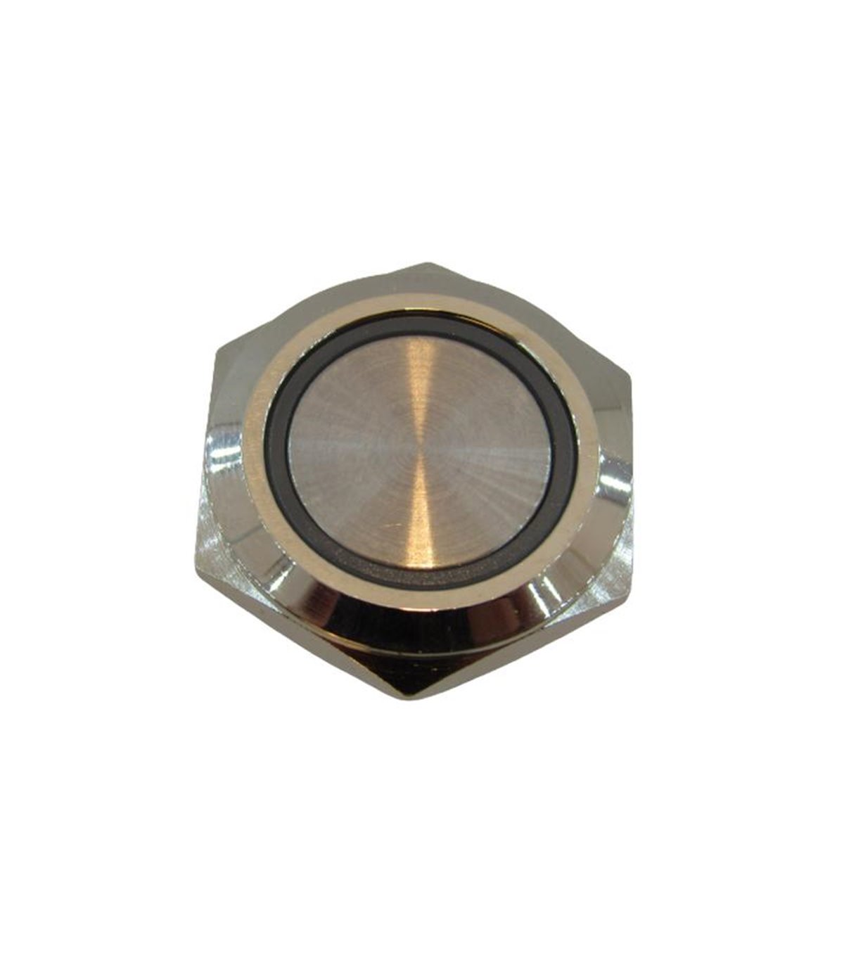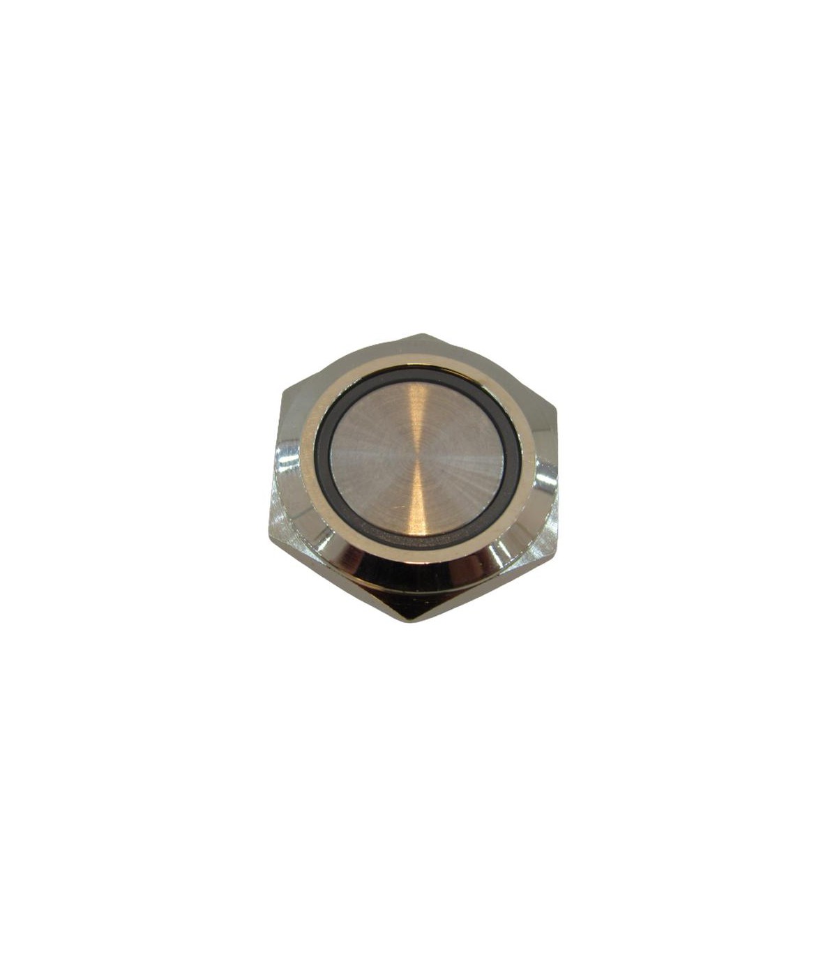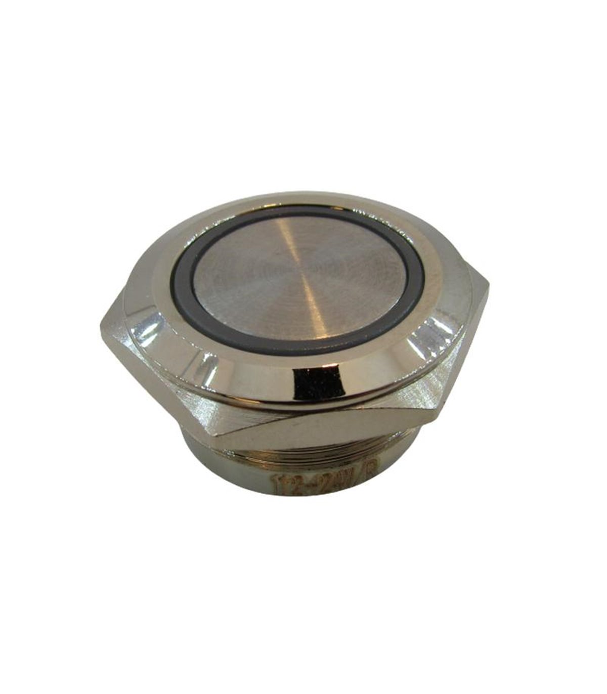 Кнопка антивандальная тактовая без фиксации хром 19 мм красный цвет.