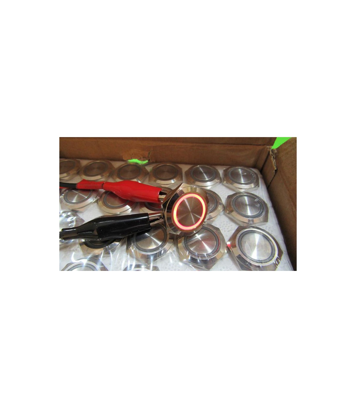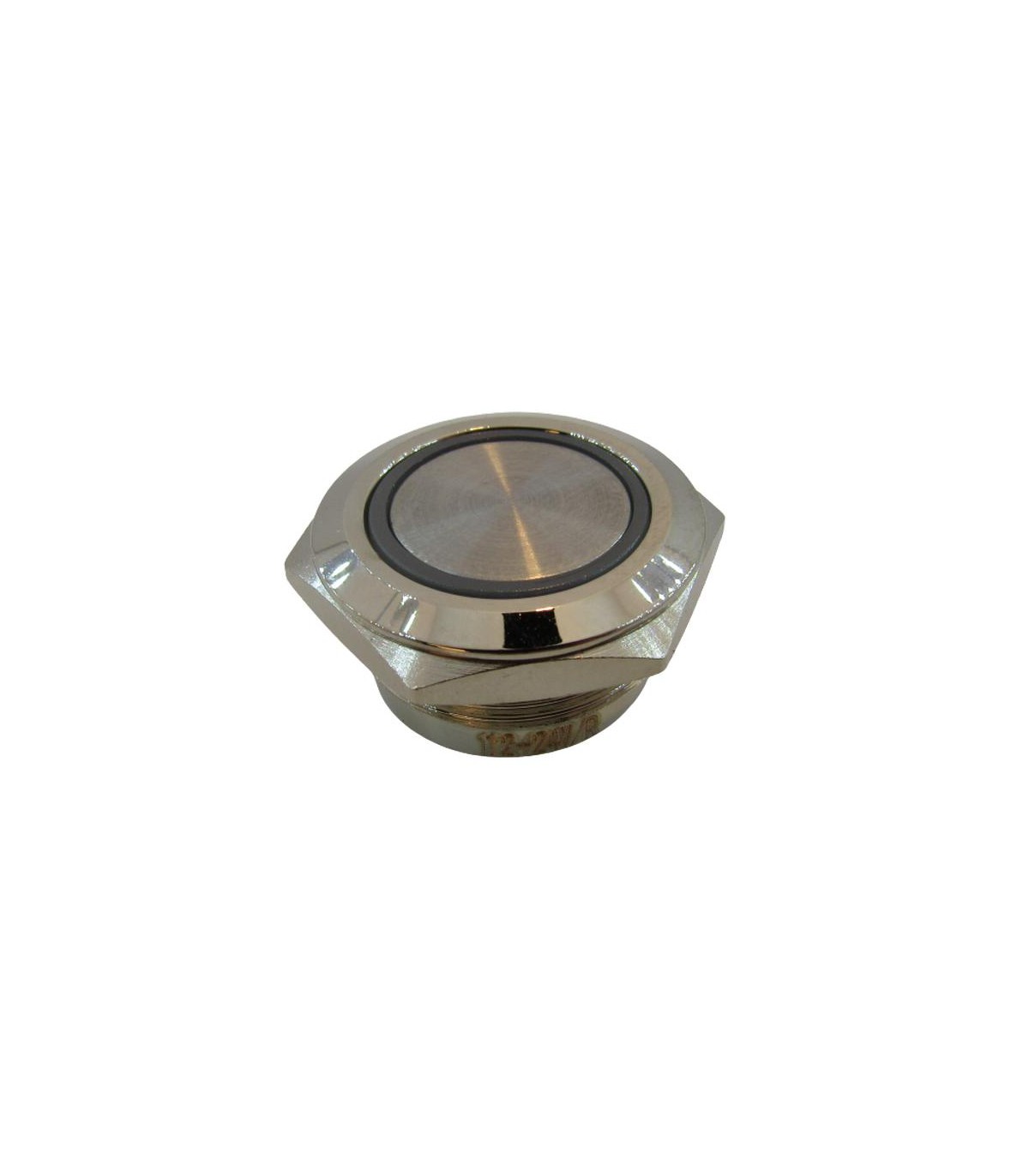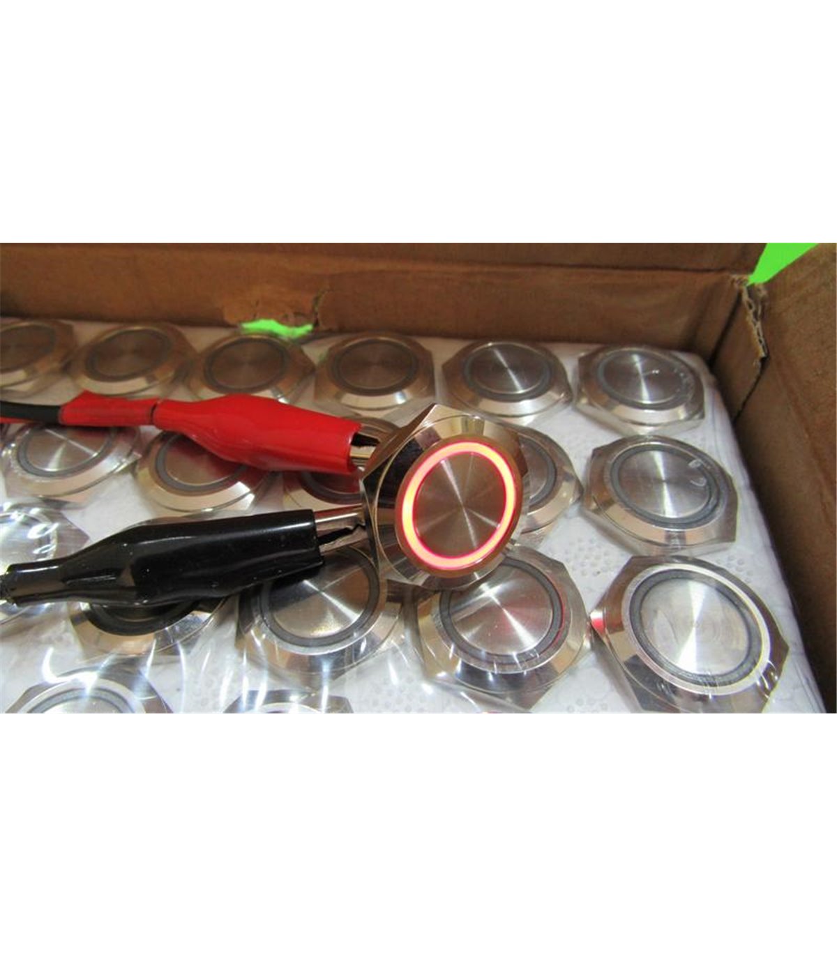 Кнопка антивандальная тактовая без фиксации хром 19 мм красный цвет.