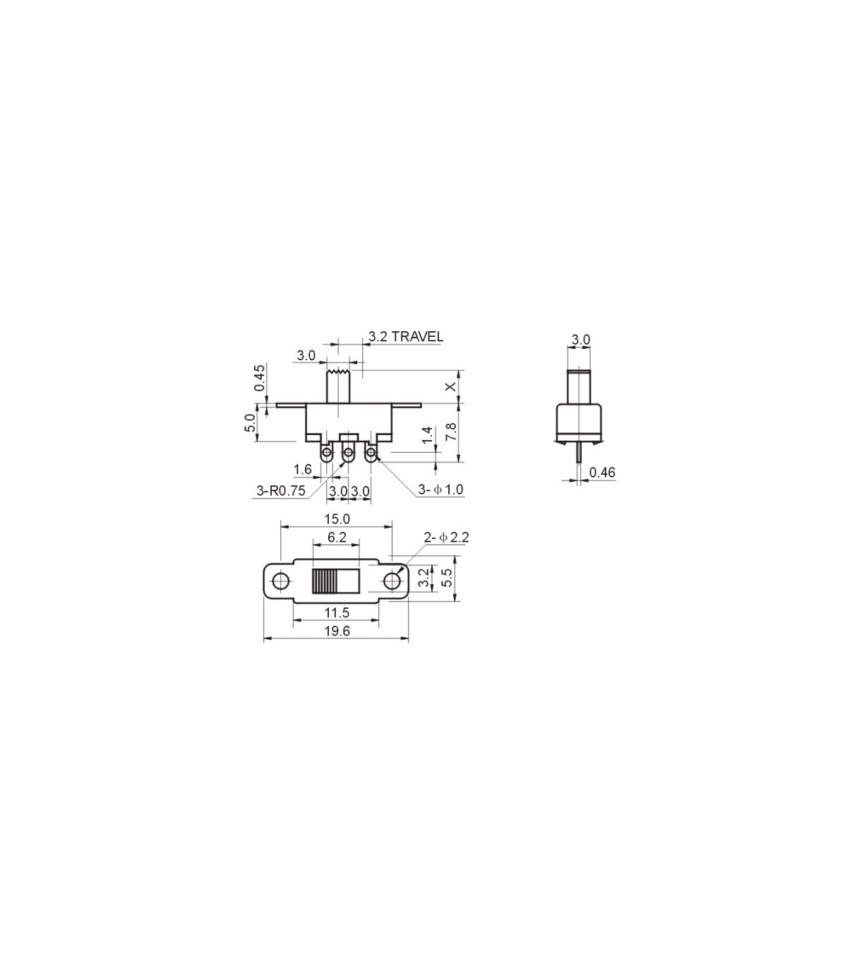 Движковый переключатель скольжения SS12F15 5шт. (12029)