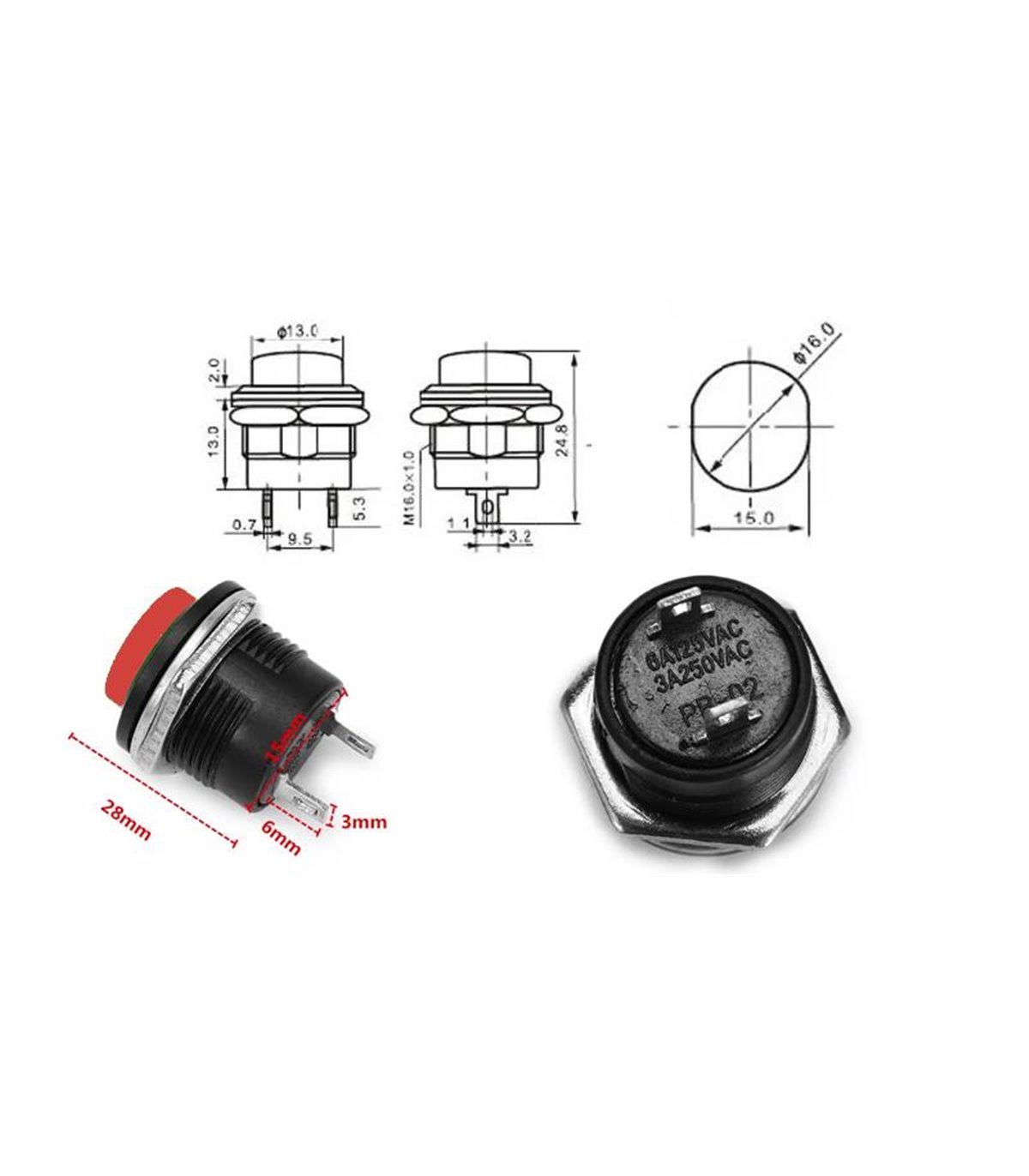 Кнопка без фиксации R13-507 250V 3A зеленая. Технические характеристики Напряжение: 6A 125V AC 3A 250V AC Сопротивление контактов Max: 50 mΩ Сопротивление изоляции Min: 100 МΩ при 500V DC Размер указан на фото