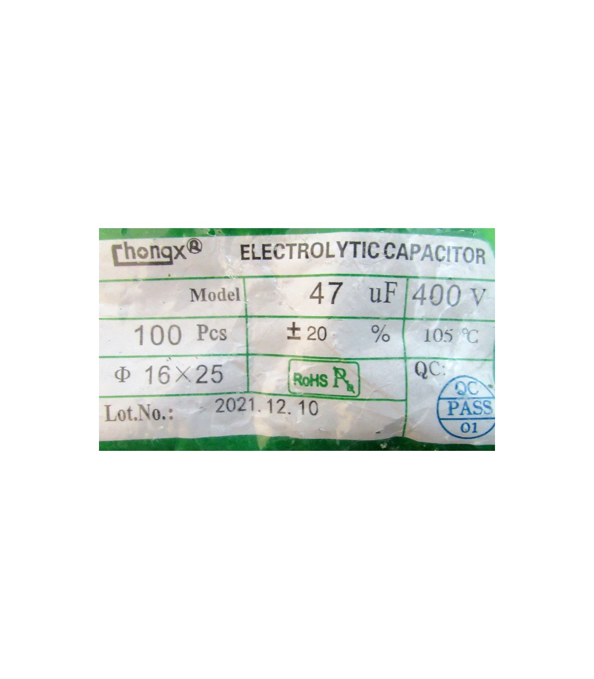 Конденсатор электролитический 400V 47uF 16*26мм.