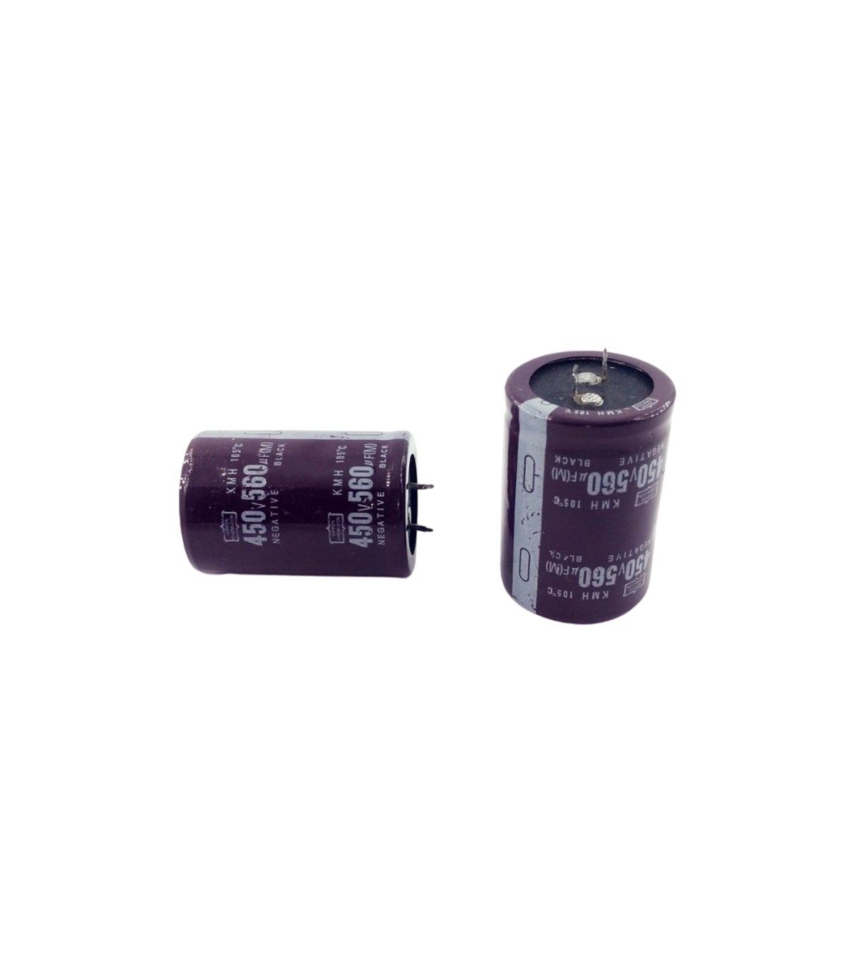Электролитический конденсатор с напряжением 450V и емкостью 560uF. Размер конденсатора - 35*50мм. Растояние между контактами - 8.5мм.