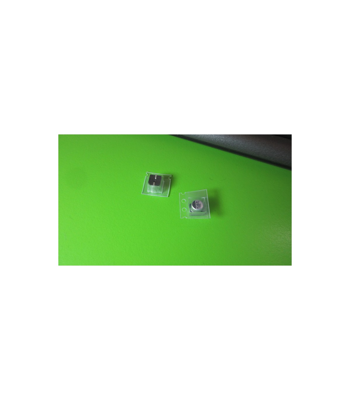 Конденсатор электролитический с напряжением 16V и емкостью 47uF. Размер конденсатора - 5*5.5mm.