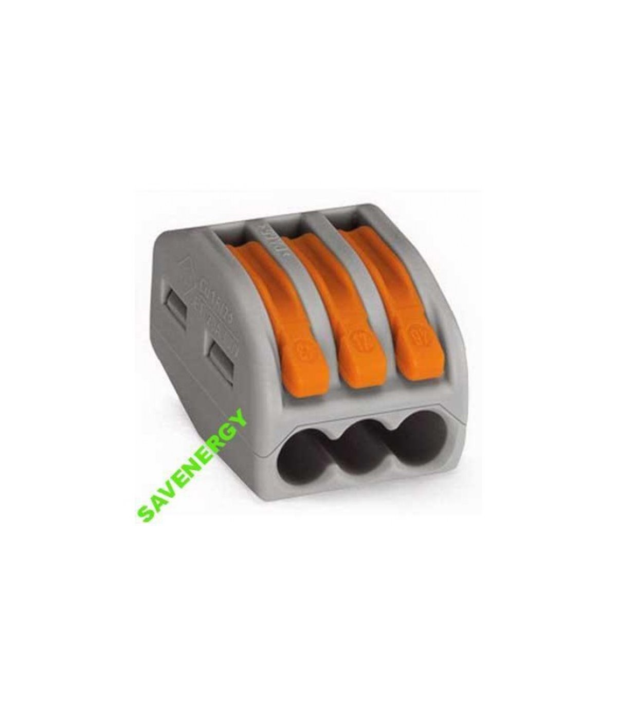 Соединительные клеммы зажимы захватывают 3 зачищенных тонкопроволочных проводника от 0,08 мм² до 2.5 мм² без инструментов. Благодаря утопленному рычажку клеммы исключено случайное неправильное нажатие на него при вкладывании в тесное пространство для встраивания.