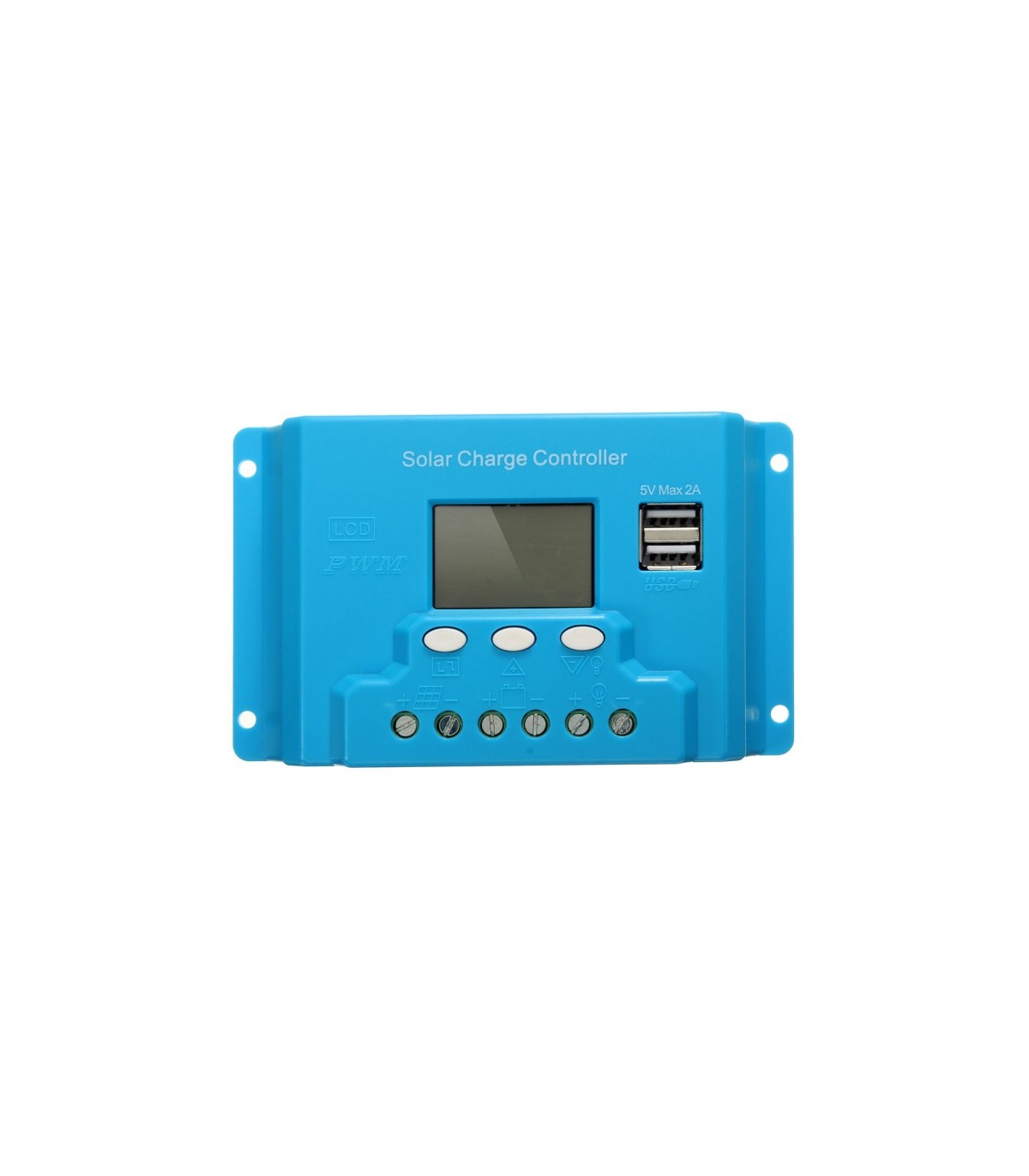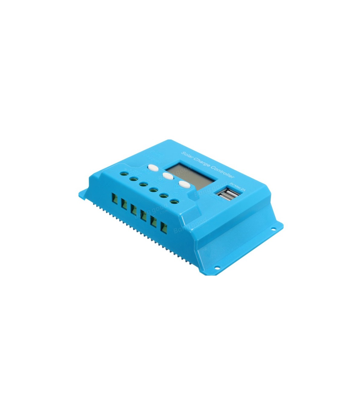 Контроллер зарядки солнечных батарей, ветровых генераторов – устройство, которое контролирует зарядку солнечных батарей, ветрогенераторов стабилизирует ток идущий от солнечных батарей, и при полной зарядке отключает солнечные модули от аккумуляторов. Солнечный контроллер является наиболее важной частью систем на основе солнечных батарей. Интеллектуальная начинка позволяет автоматически контролировать заряд, разряд и нагрузку системы. Его производительность влияет на стабильность системы и долговечность батарей. Может быть широко использован в системе на основе солнечных батарей, для обеспечения электроэнергией самых разных потребителей. Технические характеристики Поддерживает напряжение АБ, Предотвращает АБ от перезаряда, Предотвращает АБ от глубокого разряда, Защита АБ от разряда через солнечную панель (ночью, например). Внимание!!! Перед подключением контроллера к солнечной панели, обязательно подключить контроллер сначало к АКБ!!!