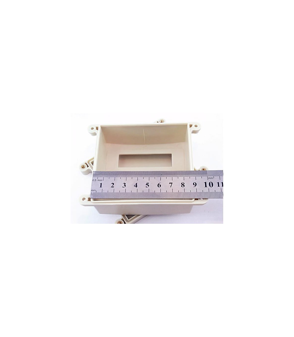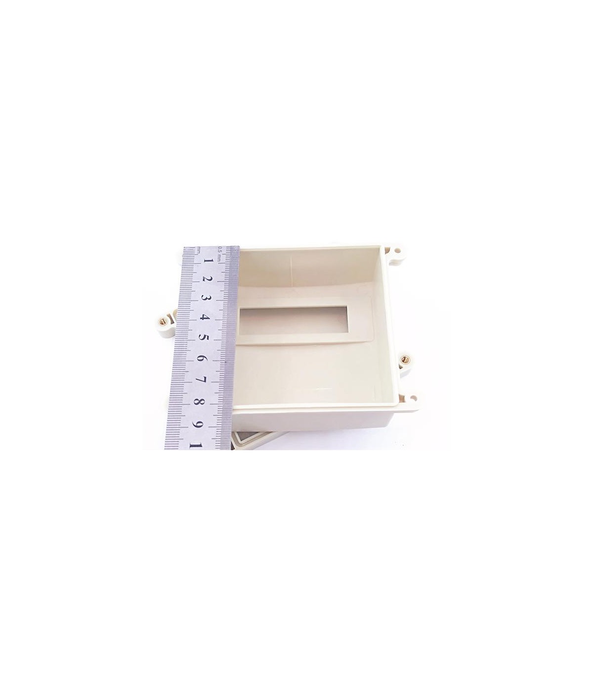 Корпус пластиковый с герметизирующим уплотнителем и выступами для монтажа на плоскую поверхность.Цвет: белыйМатериал: ABS пластикРазмеры: высота 40 мм, ширина 85 мм, длина 110 мм.Отверстия: два круглых отверстия на...