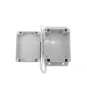 Корпус пластиковый с герметизирующим уплотнителем и выступами для монтажа на плоскую поверхность.Цвет: белыйМатериал: ABS пластикРазмеры: высота 40 мм, ширина 85 мм, длина 110 мм.Отверстия: одно круглое отверстие на...