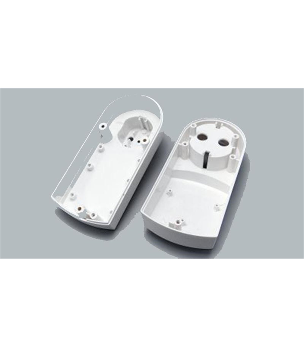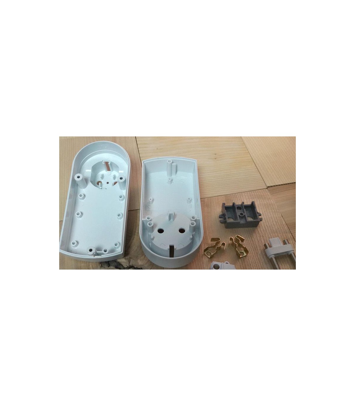 Корпус с вилкой для умной розетки VR1 ST0 для электроники 124х57х50 белый ABS VR1ST0. Корпус с вилкой для умной розетки VR1 ST0 для электроники. В основании расположена вилка V5-Ø4,8 мм. На внутренней поверхности основания и крышки находятся стойки для крепежа компонентов. На лицевой поверхности крышки в зоне 'наклейки' возможно исполнение отверстий и окон различной конфигурации. В комплект входят вилка, клеммы розетки, 2 контакта заземления + 2 контакта розетки.