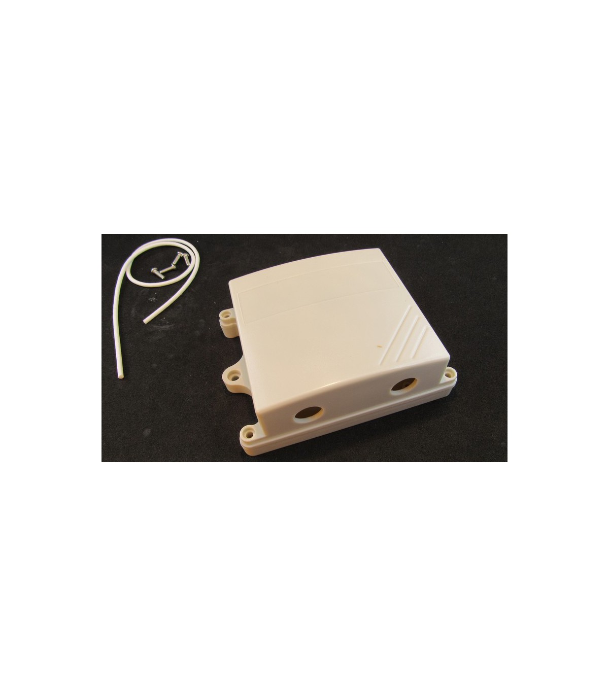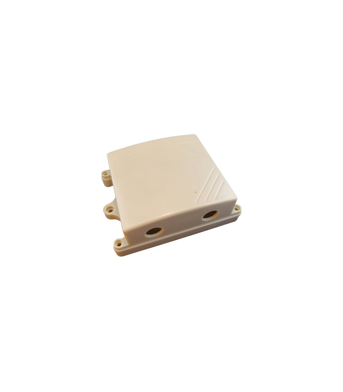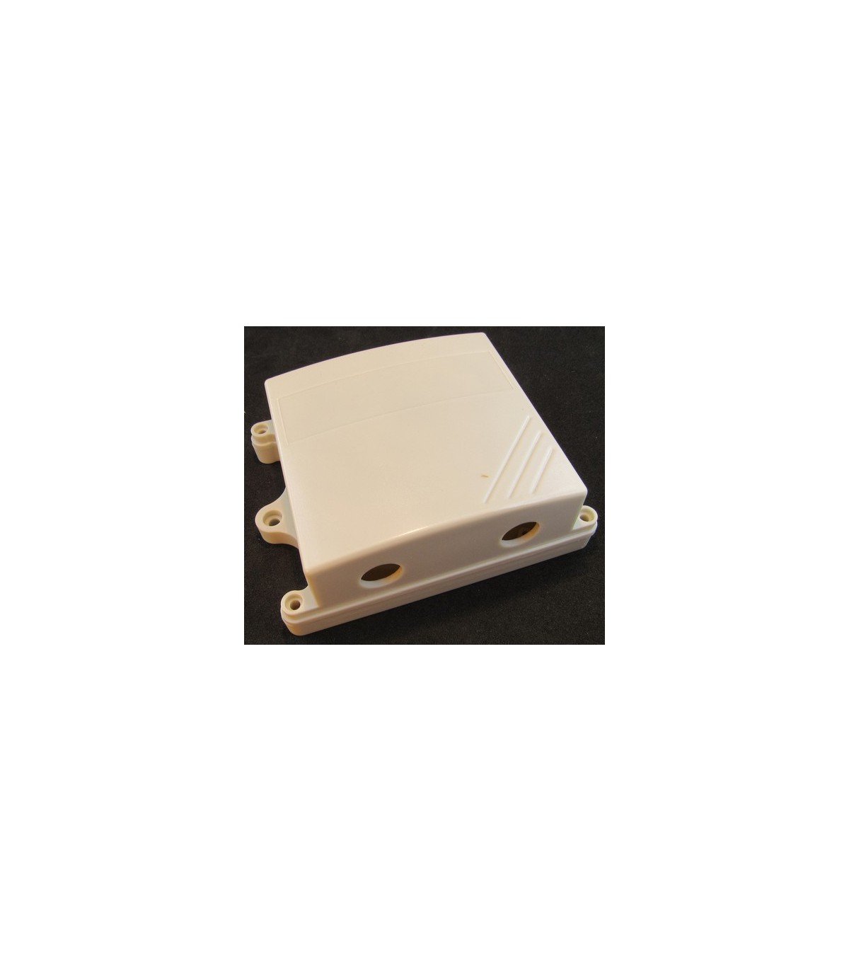 Корпус пластиковый с герметизирующим уплотнителем и выступами для монтажа на плоскую поверхность.Цвет: белыйМатериал: ABS пластикРазмеры: высота 40 мм, ширина 85 мм, длина 110 мм.Отверстия: два круглых отверстия на нижней стенке диаметром 12 ммСтрана происхождения: Китай