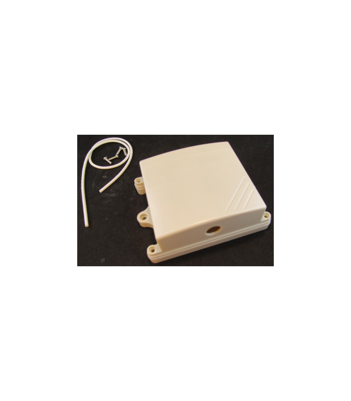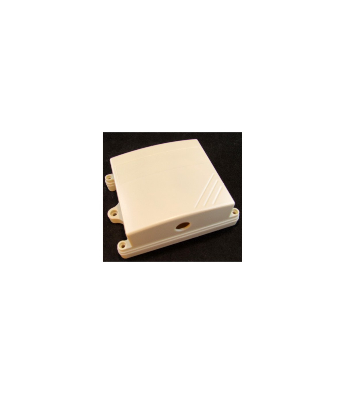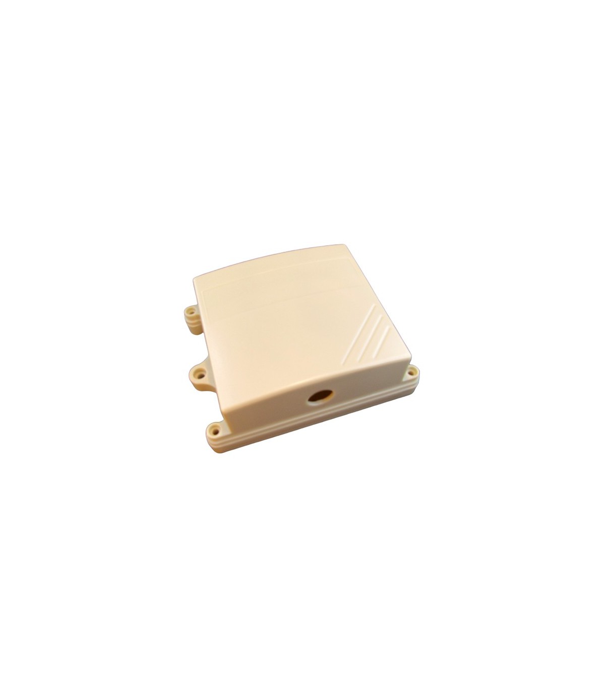 Корпус пластиковый с герметизирующим уплотнителем и выступами для монтажа на плоскую поверхность.Цвет: белыйМатериал: ABS пластикРазмеры: высота 40 мм, ширина 85 мм, длина 110 мм.Отверстия: одно круглое отверстие на нижней стенке диаметром 12 ммСтрана происхождения: Китай