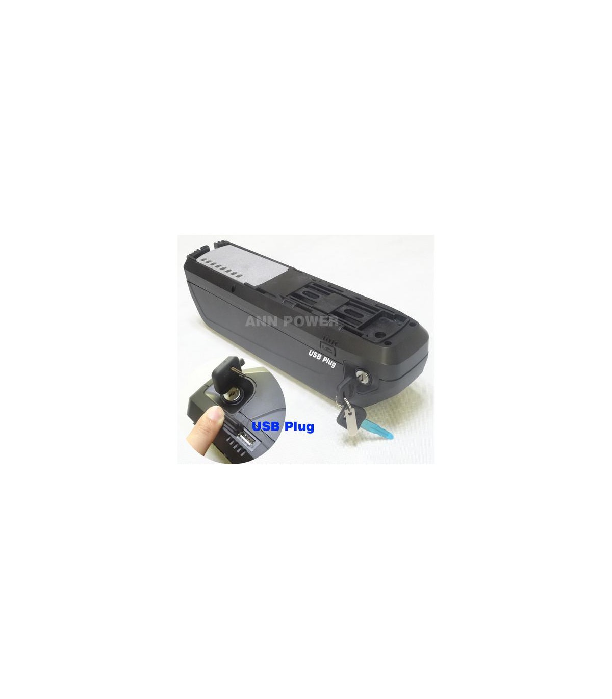 Корпус батарея для електровелосипеда Li-Ion. У комплект не входить сам акумулятор і БМС, тільки корпус з кріпленнями. Решту можна додатково дозамовити на нашому сайті. Пластик корпусу батареї досить твердий. Розміри корпусу, кількість елементів, які можна туди встановити, а також комплектація показані на фото. Якщо потрібна додаткова інформація, - перед покупкою уточнюйте. У корпусі передбачений USB роз'єм, який герметично закривається гумовою заглушкою. Для роботи цього роз'єми потрібен перетворювач напруги (на практиці помістити досить важко). Роз'єм зарядного пристрою у вигляді XLR plug. Батарея в цьому корпусі виходить знімна. Площадка кріпитися до рами, а на площадку вже встановлюється сам корпус. Знімання відбувається за рахунок зсуву. Для фіксація від довільного зсуву і від крадіжки, служить замок з ключами. Кріплення до рами передбачено за допомогою двох болтів. Вони зміцнюють площадку до рами в отвір кріплення під вело пляшку. Кріплення площадки посилено залізякою, яка вставляється в пази. Щоб не подряпати раму, в комплект входять гумові прокладки. Оскільки зібрана батарея важить близько 4 кг. Контакт батареї і площадки виконаний у вигляді роз'єму. Перфорація елементів 18650 виконана у вигляді пластикової пластини з отворами. Саме щільне розташування цих отворів дозволило вмістити в корпусі потрібну кількість елементів. Розмір під установку БМС досить обмежений прилеглими елементами 18650.