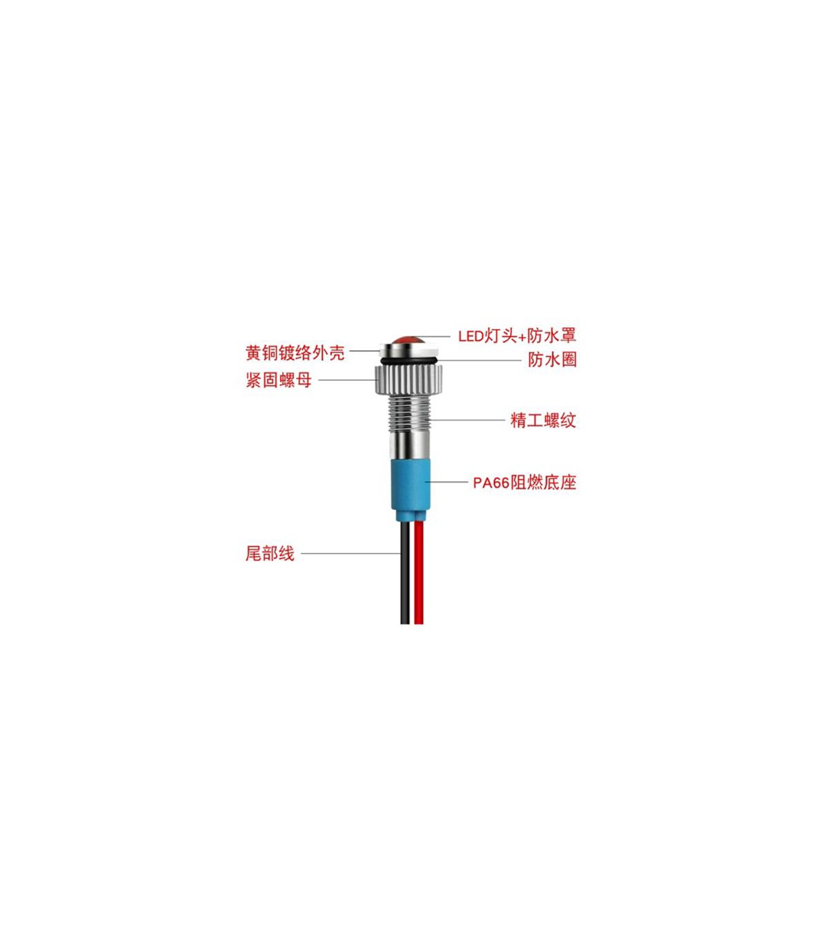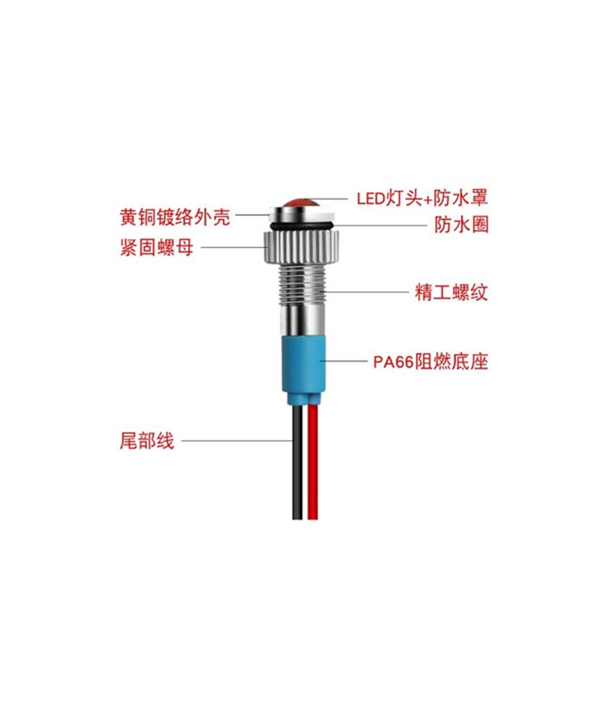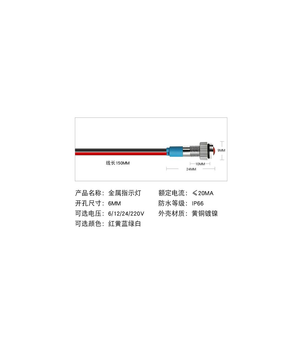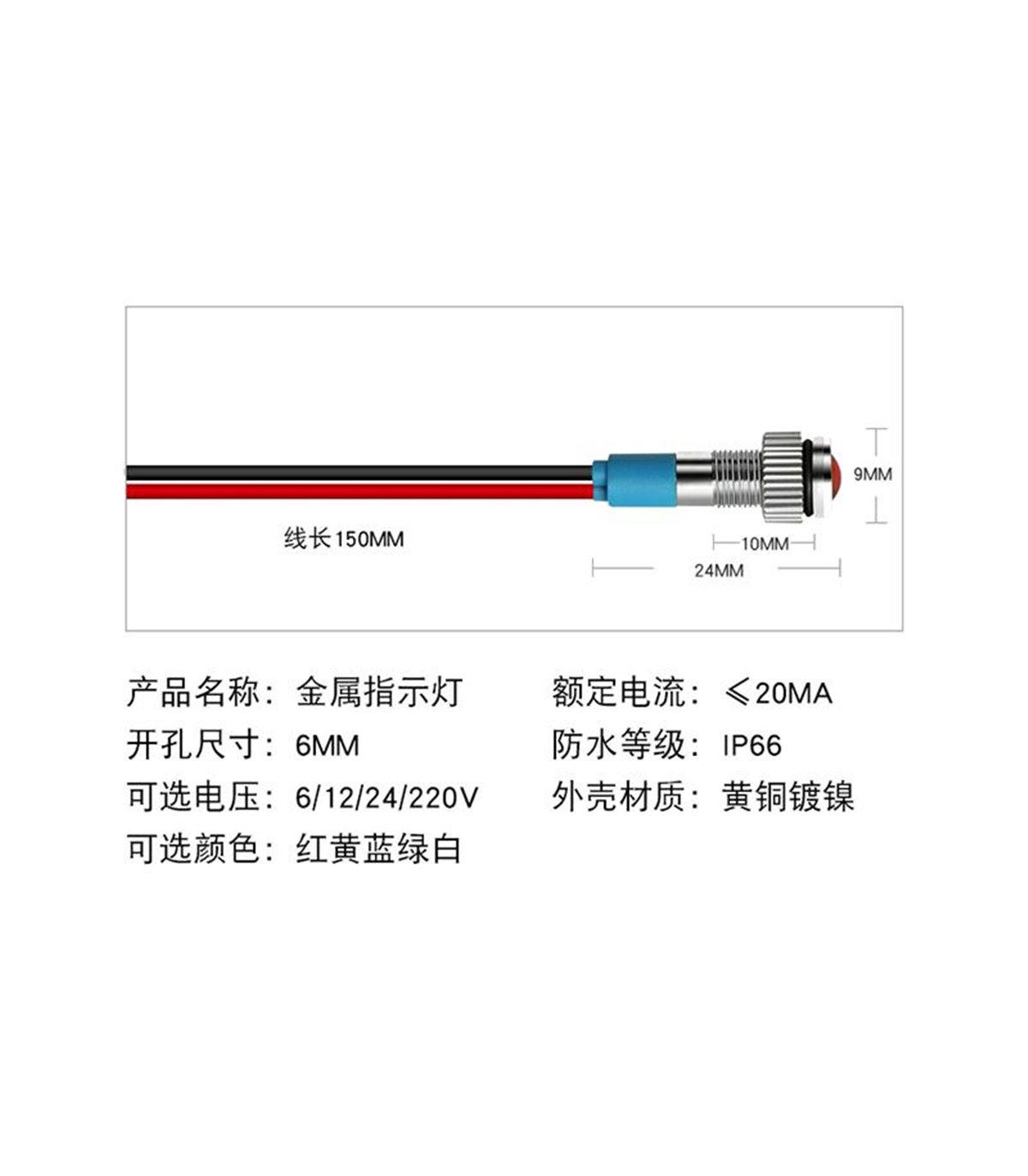 Светодиодный индикатор водонепроницаемый LED 24V зеленый 6мм.