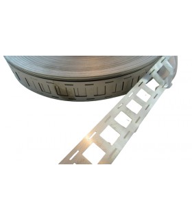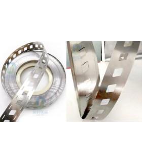 Никелированная стальная лента для сварки аккумуляторов 0.12*27мм 1м. Растояние между узкими контактами - 20.25мм.