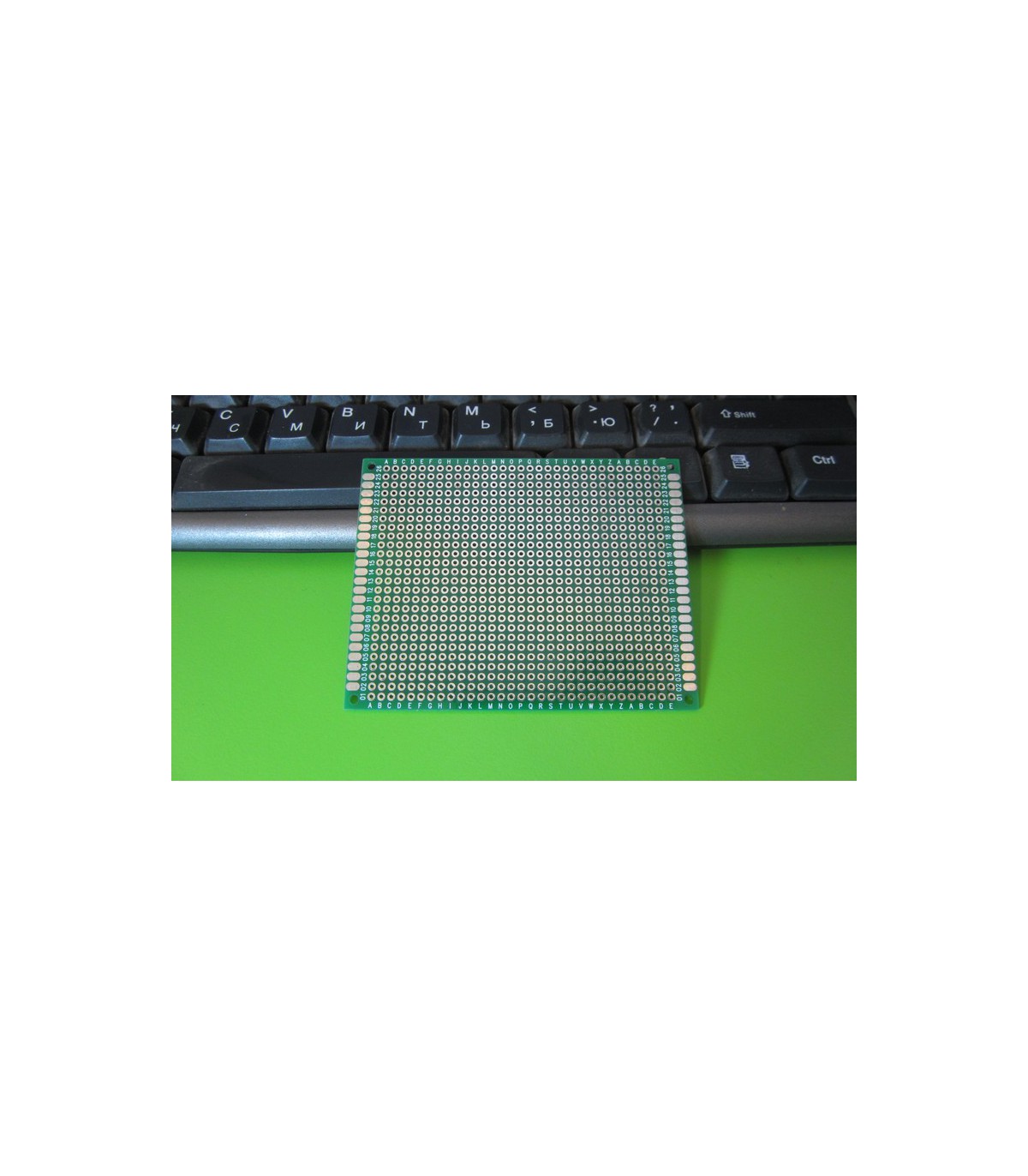 Универсальная макетная печатная плата для сборки и моделирования электронных устройств. Технические характеристики Омедненные контакты с двух сторон Размер - 7х9 см Количество отверствий - 806 шт