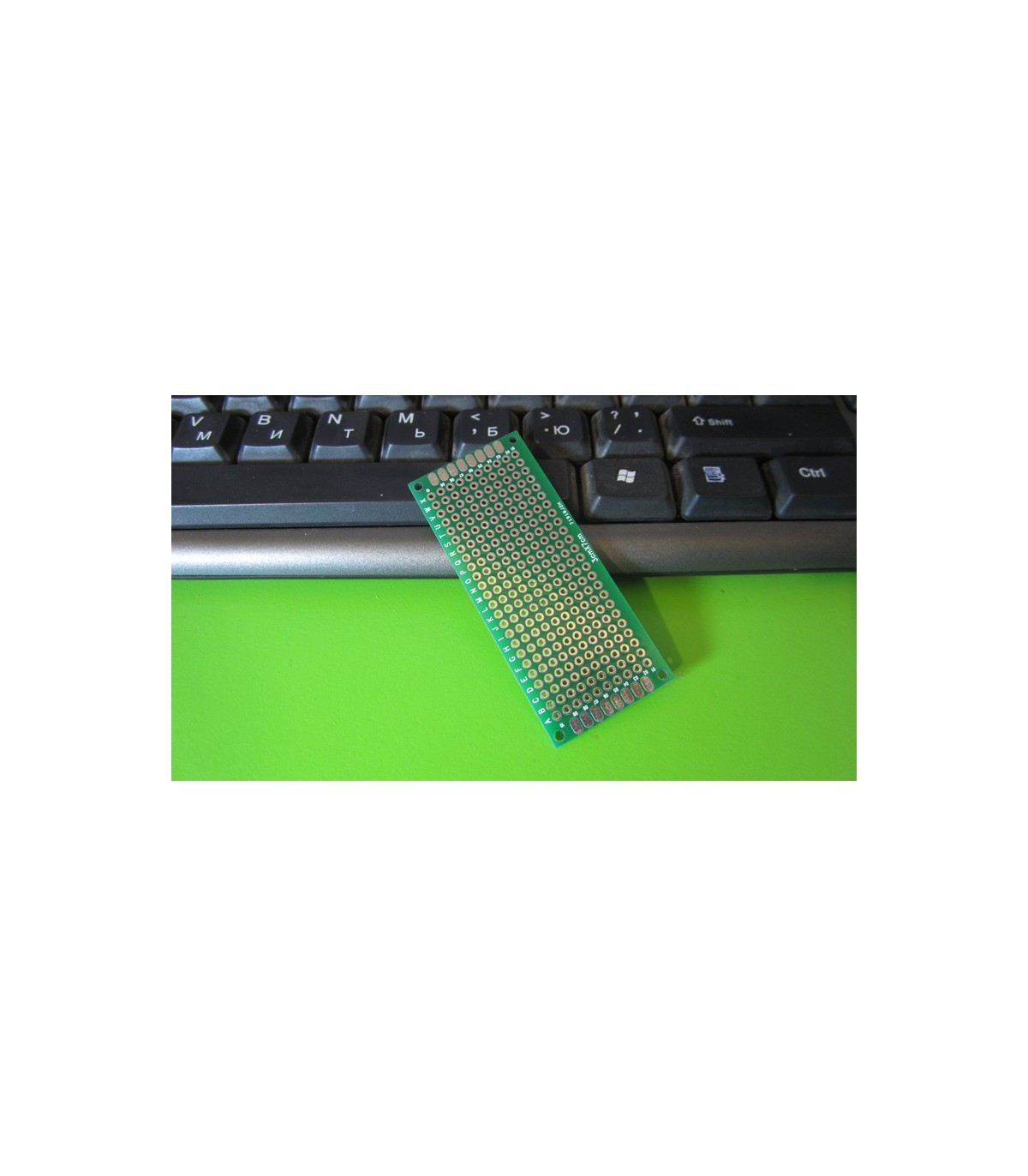 Универсальная макетная печатная плата для сборки и моделирования электронных устройств. Технические характеристики Омедненные контакты с двух сторон Размер - 5х7 см Количество отверствий - 432 шт