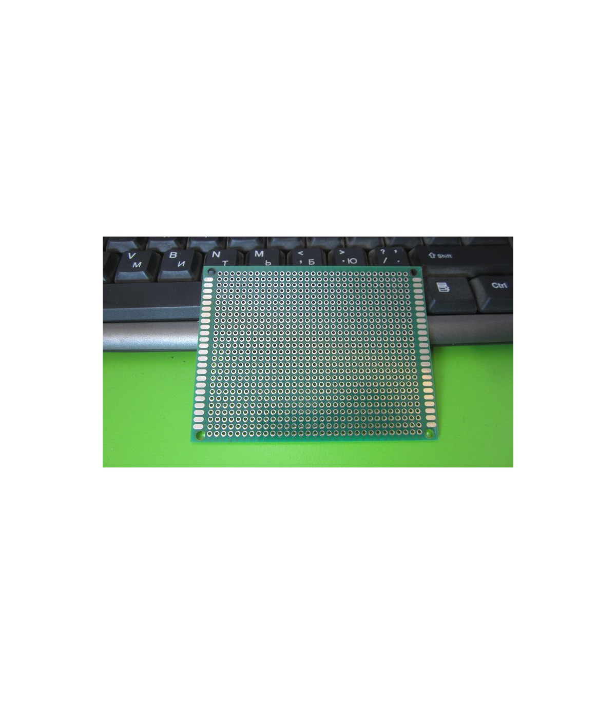 Универсальная макетная печатная плата для сборки и моделирования электронных устройств. Технические характеристики Омедненные контакты с двух сторон Размер - 5х7 см Количество отверствий - 432 шт